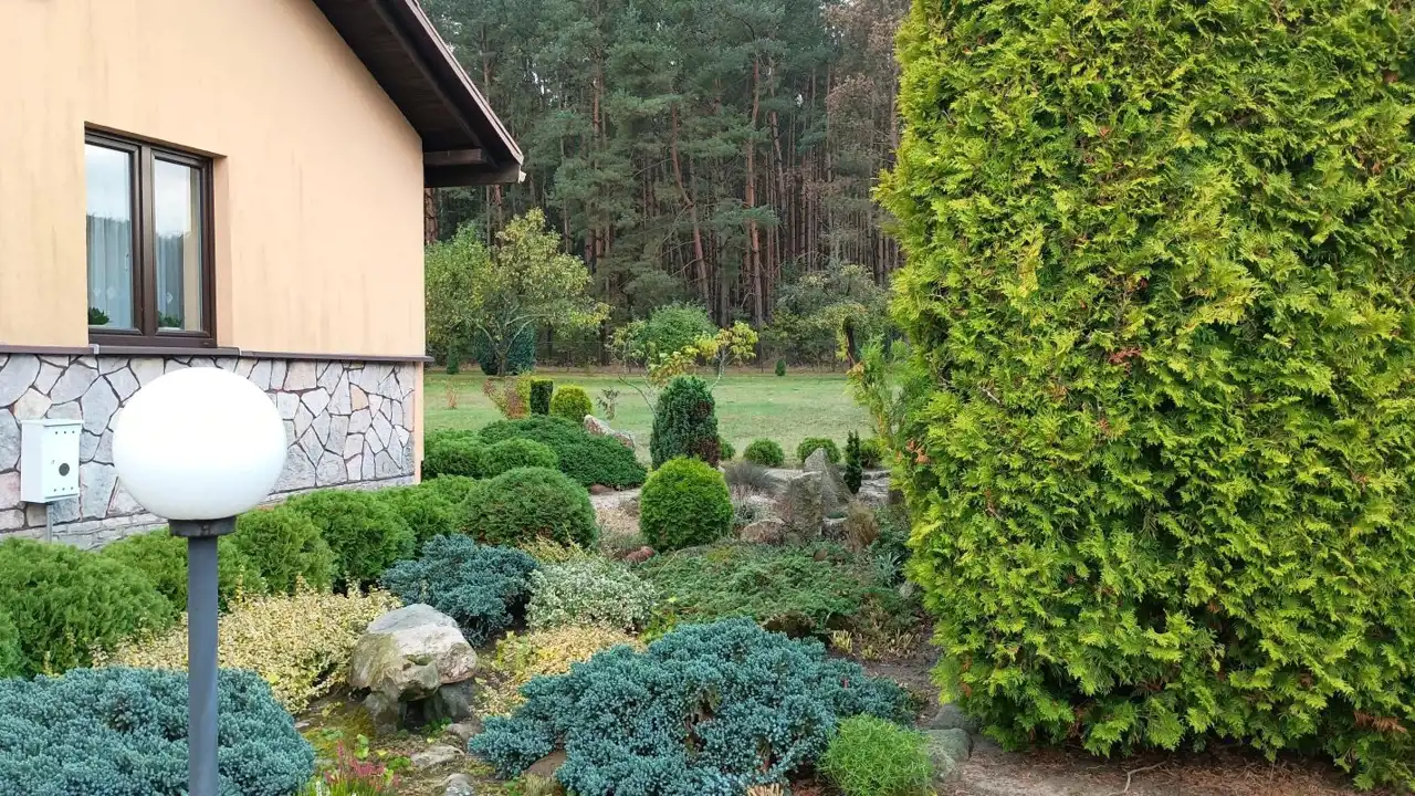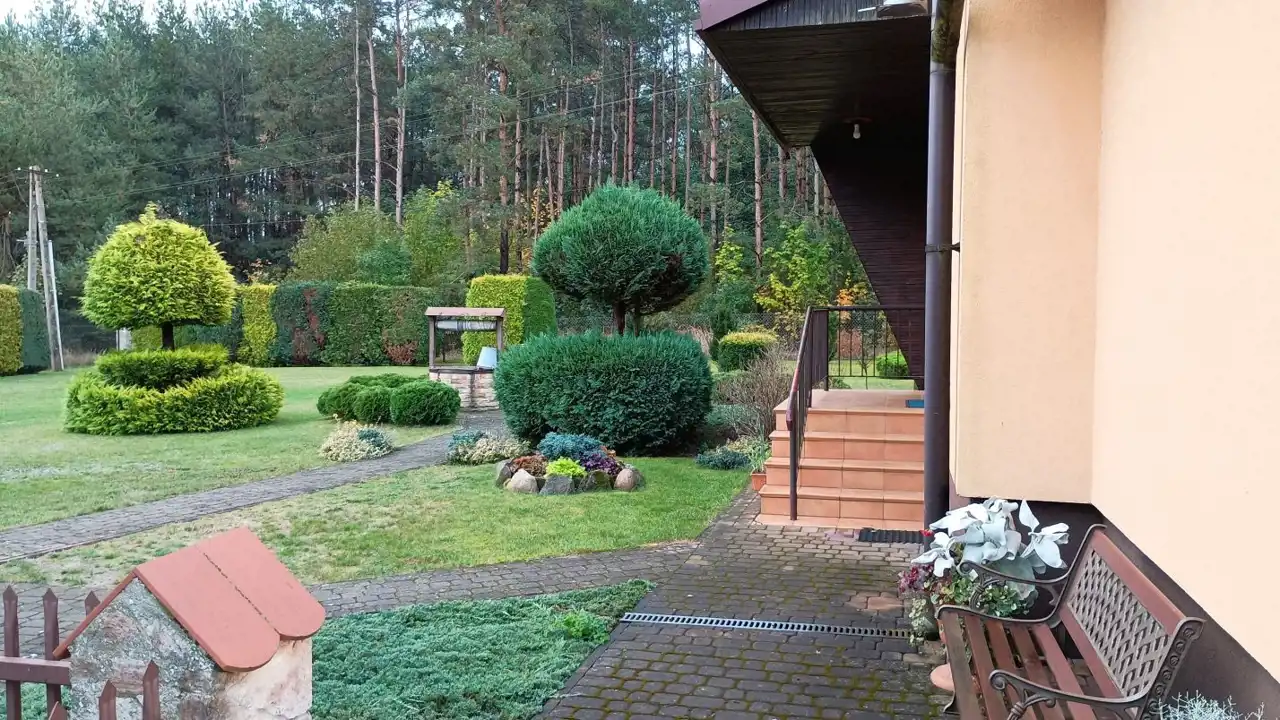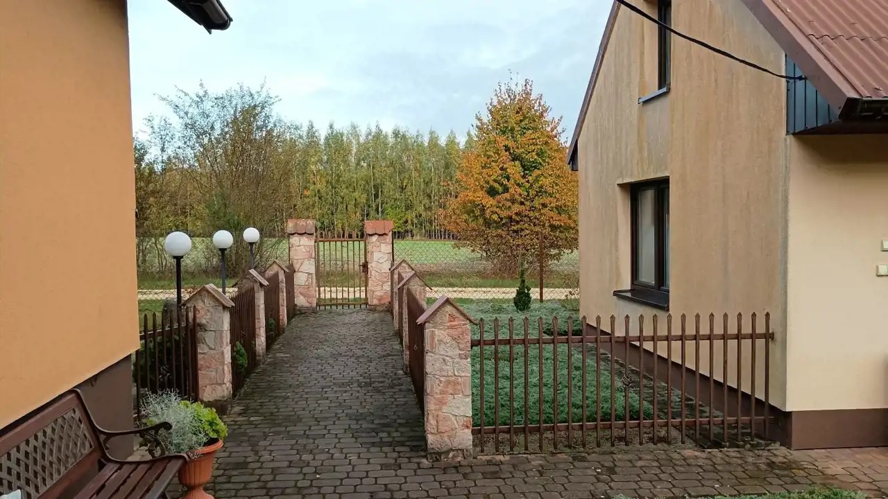Działka o powierzchni 3000m2, zabudowana domem jednorodzinnym, budynkiem gospodarczym i garażem.