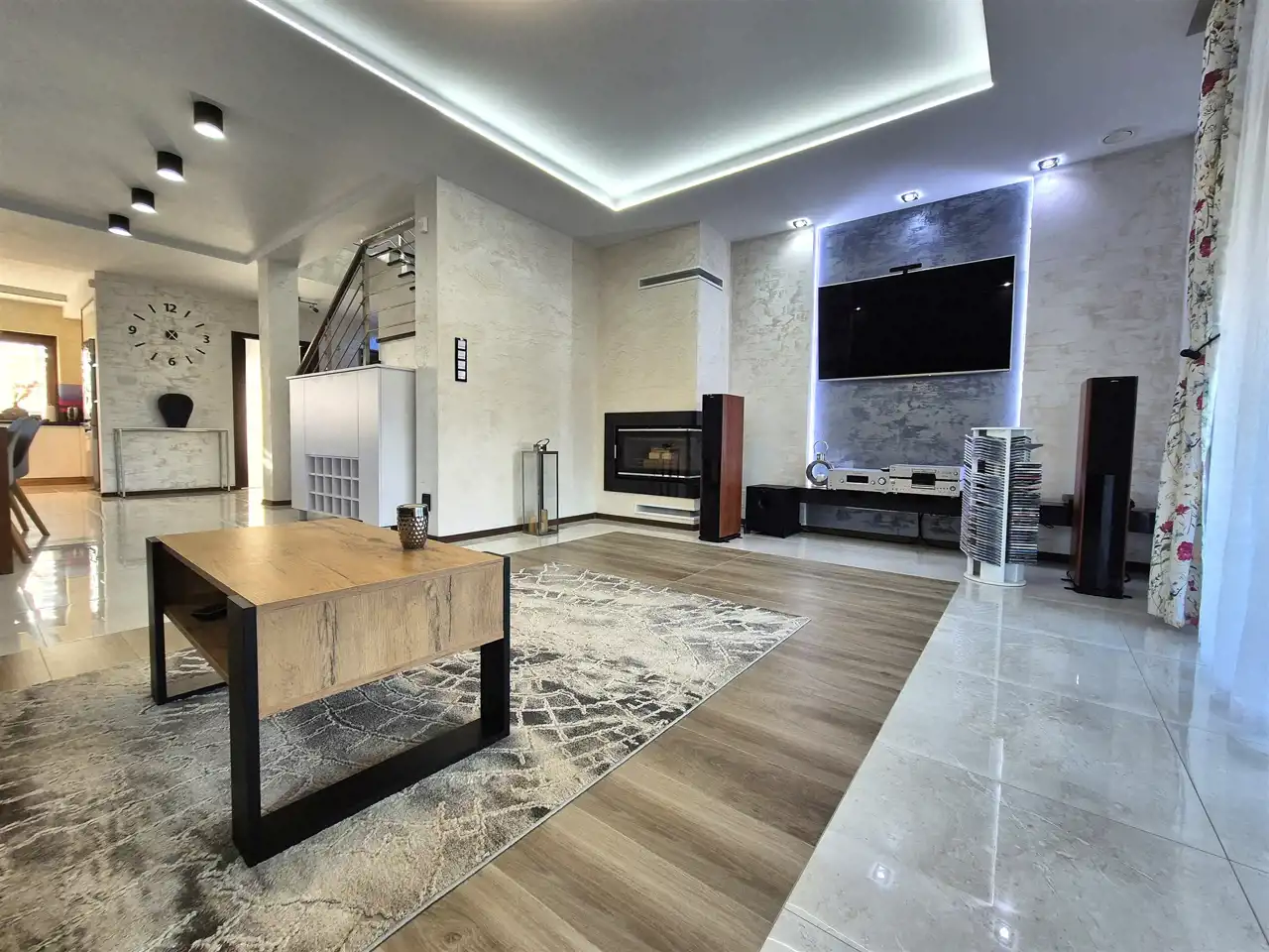 w domu na całej powierzchni rozprowadzono ogrzewanie podłogowe oraz kaloryfery, co pozwala na optymalizację komfortu i zużycia energii,