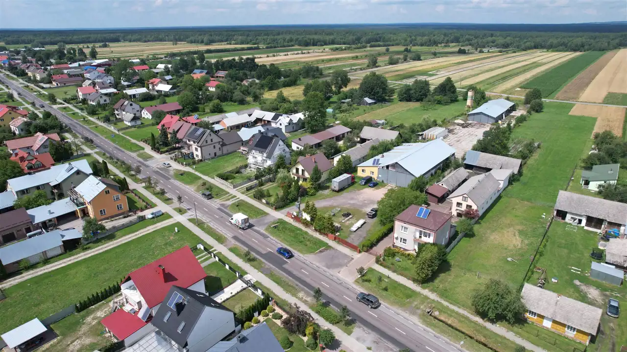 w niedalekiej odległości niezbędna infrastruktura: Urząd Gminy, bank, punkty handlowo-usługowe, stacja paliw, ośrodek zdrowia, apteka.