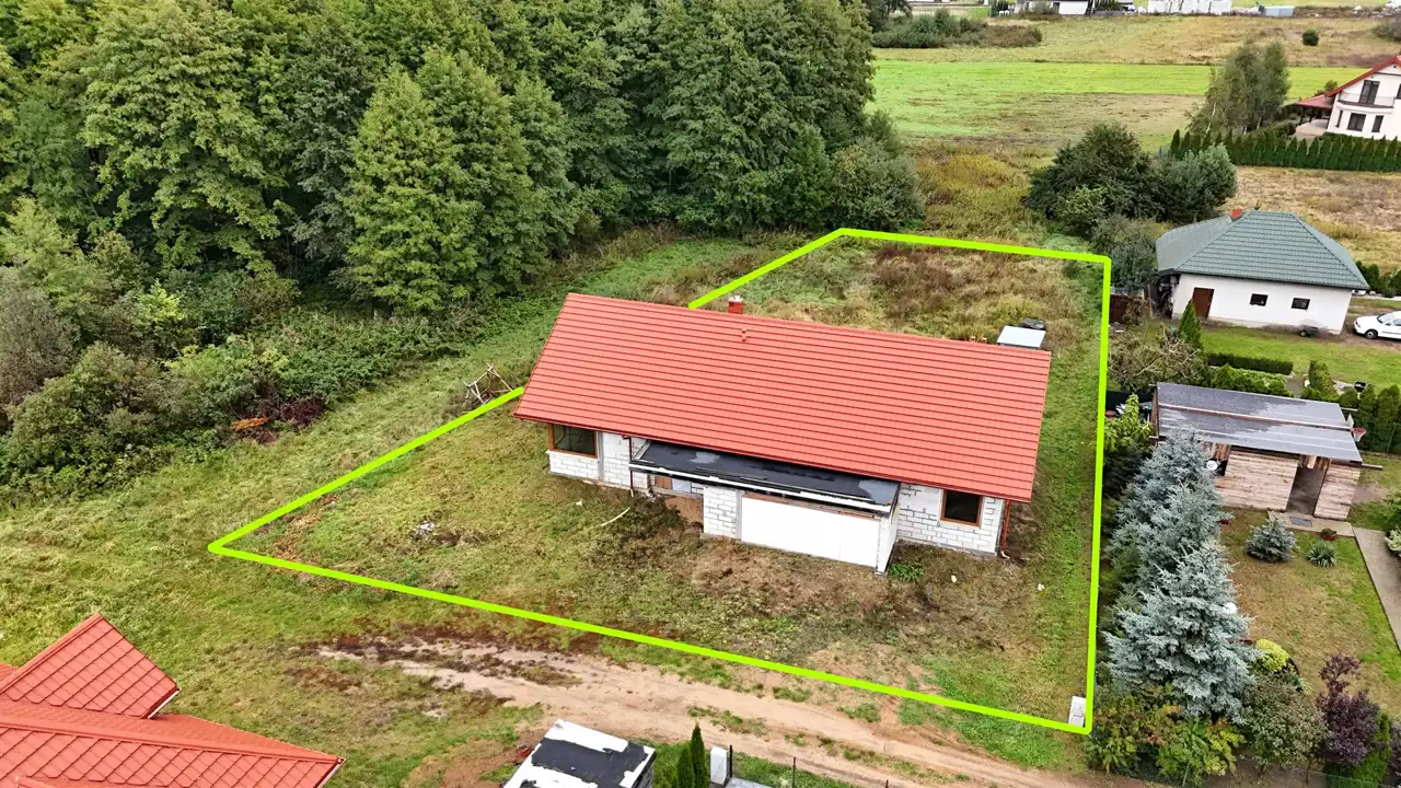Działka o powierzchni 1254 m2, położona w sąsiedztwie lasu olchowego, w drugiej linii drogi gminnej asfaltowej. Dojazd 30-metrową drogą gruntową wewnętrzną. Na działce skrzynka energetyczna, sieć kanalizacyjna w pasie drogowym obok działki, sieć wodociągowa w odległości 50 metrów od działki.