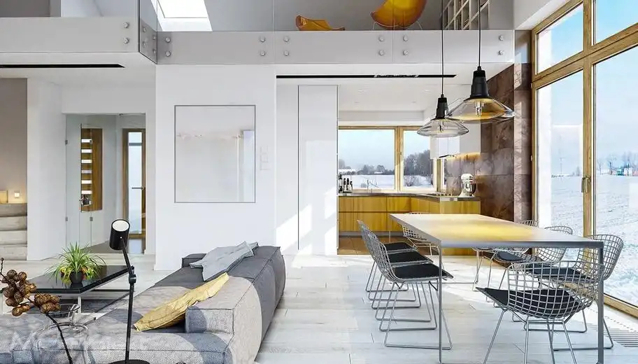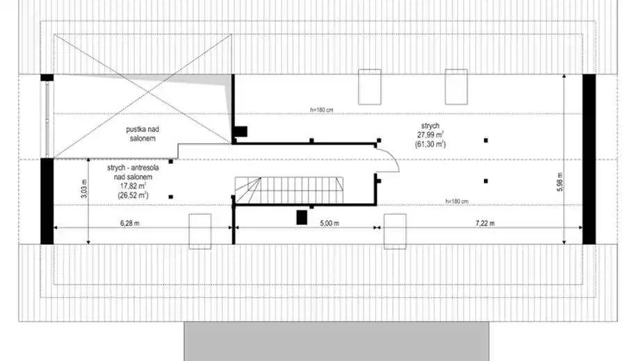 Wewnątrz budynku nie wykonano ścian działowych co pozwala na własną aranżację wnętrza.