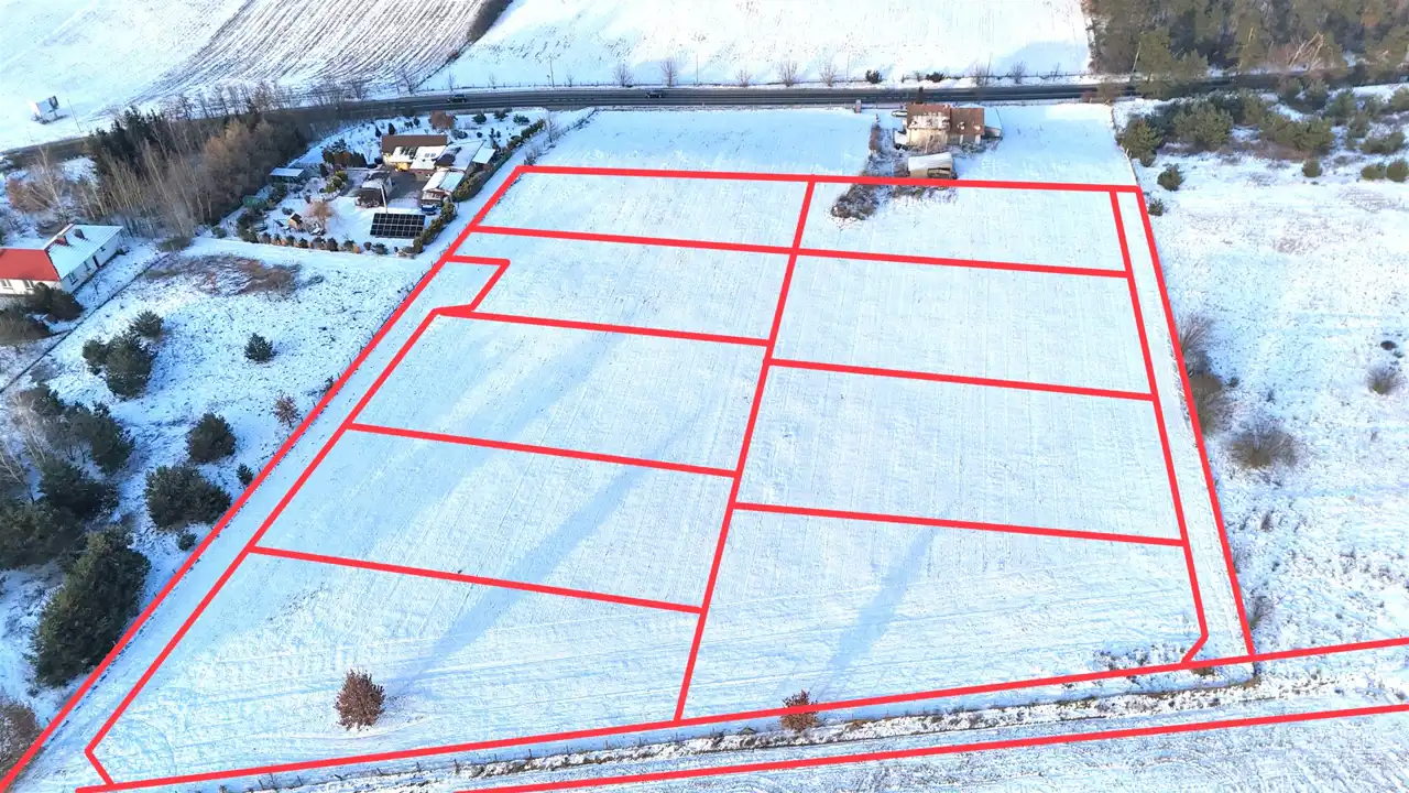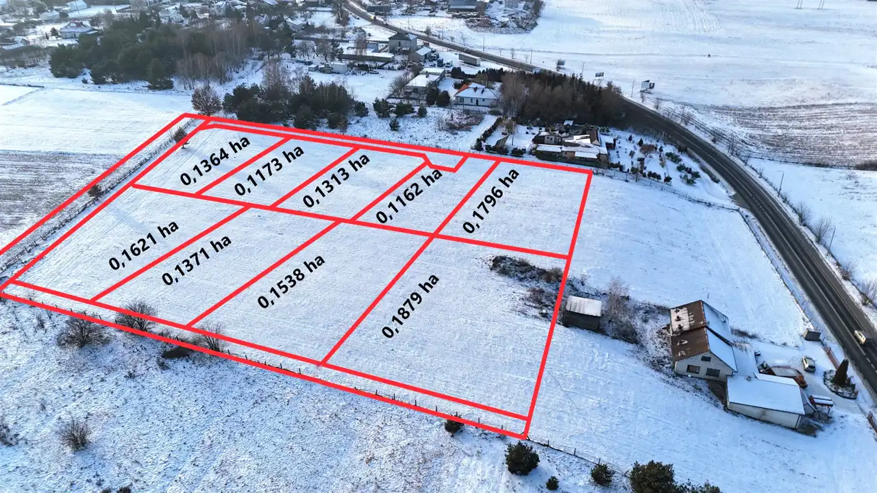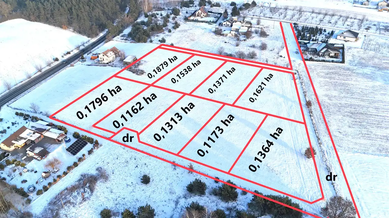 Działki o powierzchni od 1162 m2 do 1879 m2 w cenie 105 zł/m2. Woda i prąd obok działek.