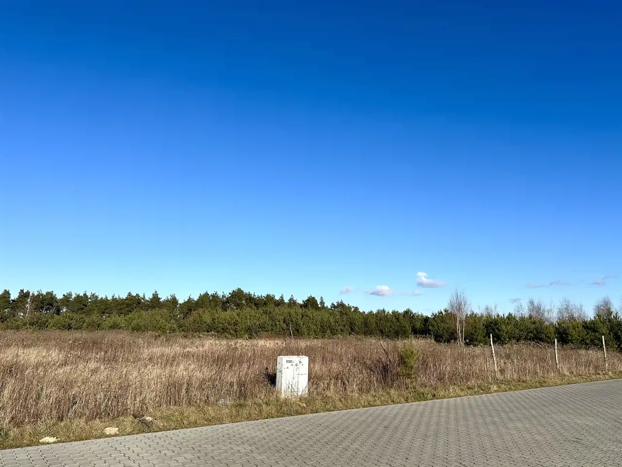 prąd: skrzynka z prądem na granicy dwóch działek (podpisanie umowy z energetyką przez przyszłego nabywcę) - na zdjęciu pokazane umiejscowienie mediów względem działki.