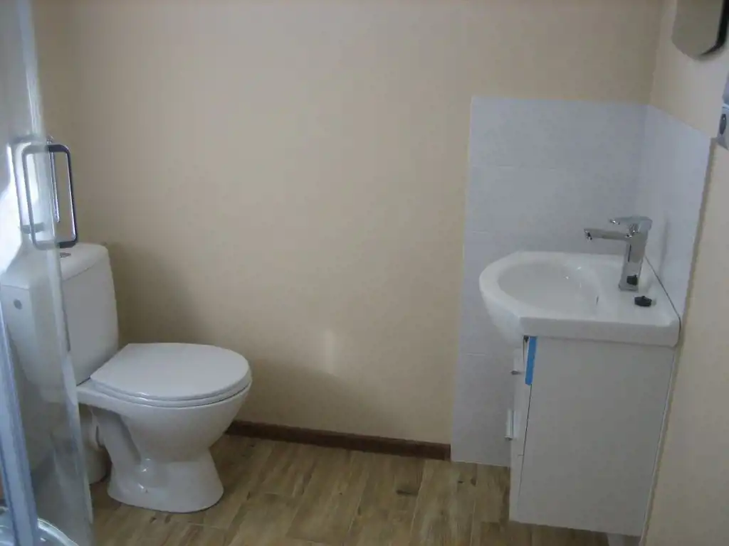 Parterowy budynek mieszkalny o pow. użytkowej 46,23 mkw. składający się z pokoju dziennego z aneksem kuchennym o pow. 23,10 mkw., sypialnia o pow. 14,85 mkw., przedpokój o pow. 4,68 mkw., łazienkę o pow. 3,60 mkw.