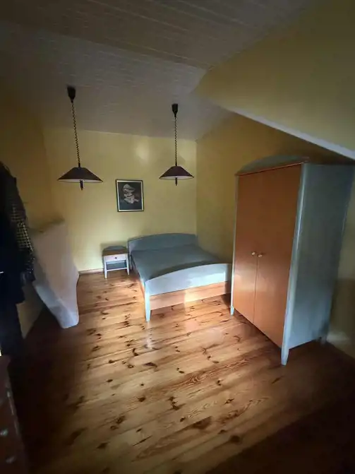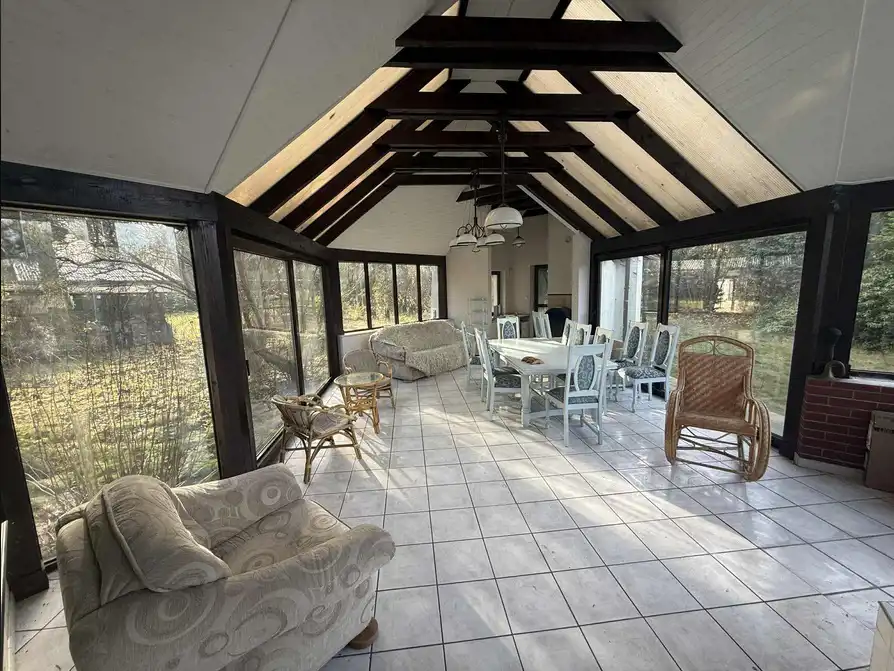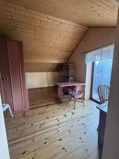 Komfortowy dom, położony w cichej i spokojnej okolicy Aleksandrowa Łódzkiego, tuż przy granicy z Łodzią. Nieruchomość znajduje się 5 km do zjazdu na S14, 3 km od centrum Aleksandrowa i 10 km od Manufaktury. Dom wybudowany w połowie lat 90tych, z wykorzystaniem najlepszych materiałów dostępnych w tamtych latach. Dachówka ceramiczna Creaton, drewniane podłogi przystosowane do ogrzewania podłogowego na parterze, stolarka zewnętrzna i wewnętrzna z drewna egzotycznego, włoskie meble kuchenne wykonane na wymiar, w późniejszym czasie otwarte palenisko kominka zostało zastąpione dużym wydajnym kominkiem narożnym, z szybą chowaną w obudowie komina. Powierzchnia domu to 215 m2. W podpiwniczeniu jest garaż na jeden samochód, pomieszczenie gospodarcze, na parterze salon, biblioteka. Półpiętro to kuchnia z jadalnią, garderobą, duża łazienka z pełnowymiarowym oknem, którą można zaadaptować na kolejne pomieszczenie mieszkalne. Z jadalni wyjście na duży taras, pod którym można składować meble zimą Wyżej jest osobna sypialnia, na samej górze główna łazienka oraz dwie sypialnie, jedna z balkonem na zachodnią stronę. Dom otacza zagospodarowany ogród o powierzchni 1400 m2. Na posesji znajduje się dodatkowa brama, można zostawić drugie auto na przygotowanym stanowisku z kostki, solidna drewutnia, grill zewnętrzny z osobnym kominem. Do domu przylega przeszklony ogród zimowy, wejście z salonu, z dodatkowym kominkiem, o powierzchni około 40 m2. Ogrzewanie podłogowe na parterze, konwencjonalne grzejniki na piętrze. Piec gazowy ciepła woda / grzanie. Z uwagi na gotową instalację podłogową, można wymienić go na pompę ciepła. Dom wymaga odświeżenia.