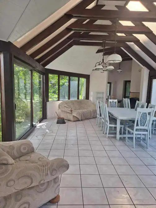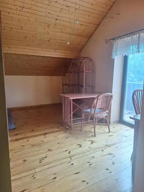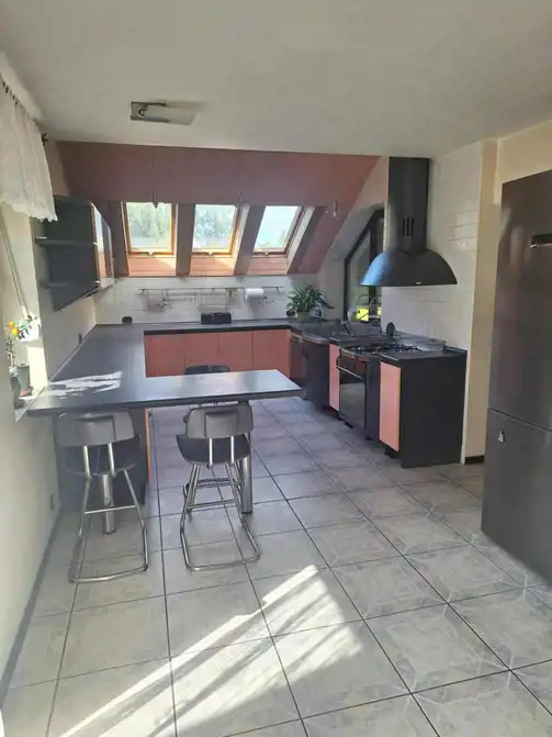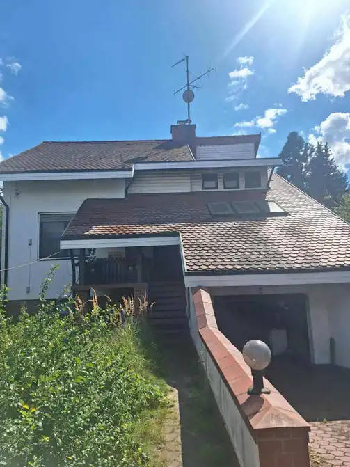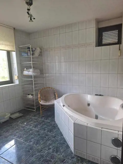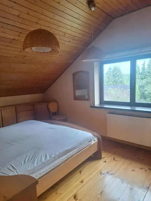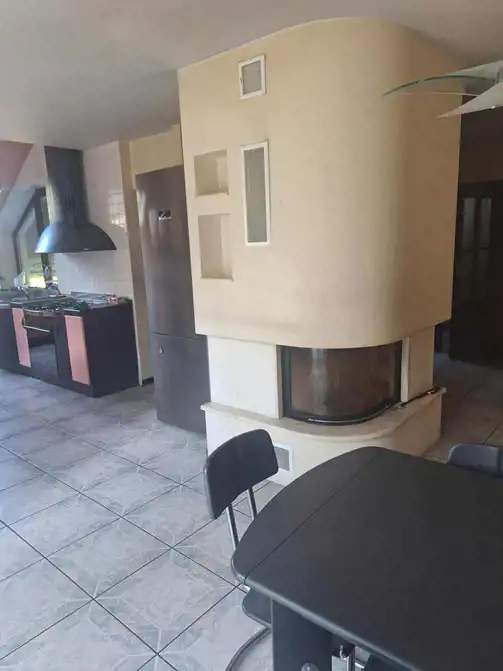 Komfortowy dom, położony w cichej i spokojnej okolicy Aleksandrowa Łódzkiego, tuż przy granicy z Łodzią. Nieruchomość znajduje się 5 km do zjazdu na S14, 3 km od centrum Aleksandrowa i 10 km od Manufaktury. Dom wybudowany w połowie lat 90tych, z wykorzystaniem najlepszych materiałów dostępnych w tamtych latach. Dachówka ceramiczna Creaton, drewniane podłogi przystosowane do ogrzewania podłogowego na parterze, stolarka zewnętrzna i wewnętrzna z drewna egzotycznego, włoskie meble kuchenne wykonane na wymiar, w późniejszym czasie otwarte palenisko kominka zostało zastąpione dużym wydajnym kominkiem narożnym, z szybą chowaną w obudowie komina. Powierzchnia domu to 215 m2. W podpiwniczeniu jest garaż na jeden samochód, pomieszczenie gospodarcze, na parterze salon, biblioteka. Półpiętro to kuchnia z jadalnią, garderobą, duża łazienka z pełnowymiarowym oknem, którą można zaadaptować na kolejne pomieszczenie mieszkalne. Z jadalni wyjście na duży taras, pod którym można składować meble zimą Wyżej jest osobna sypialnia, na samej górze główna łazienka oraz dwie sypialnie, jedna z balkonem na zachodnią stronę. Dom otacza zagospodarowany ogród o powierzchni 1400 m2. Na posesji znajduje się dodatkowa brama, można zostawić drugie auto na przygotowanym stanowisku z kostki, solidna drewutnia, grill zewnętrzny z osobnym kominem. Do domu przylega przeszklony ogród zimowy, wejście z salonu, z dodatkowym kominkiem, o powierzchni około 40 m2. Ogrzewanie podłogowe na parterze, konwencjonalne grzejniki na piętrze. Piec gazowy ciepła woda / grzanie. Z uwagi na gotową instalację podłogową, można wymienić go na pompę ciepła. Dom wymaga odświeżenia.