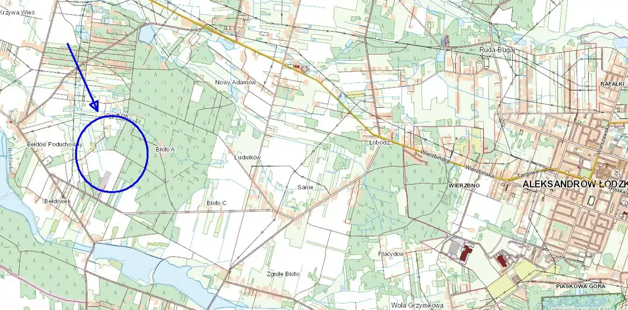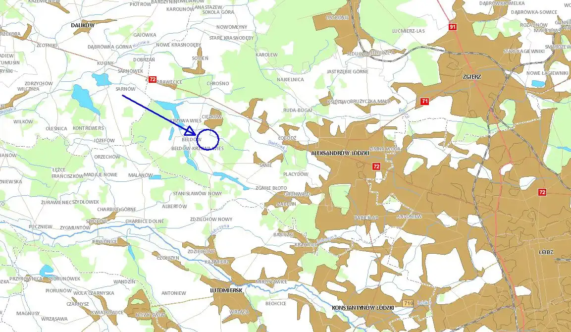 OTOCZENIE DZIAŁKI Sąsiedztwo: gospodarstwa rolne, lasy państwowe,niedaleko wieś Bełdów