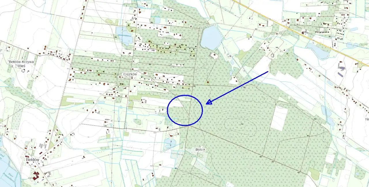 OTOCZENIE DZIAŁKI (nieuciążliwe). Sąsiedztwo: las państwowy , zabudowa siedliskowa , nieco dalej nowa zabudowa jednorodzinna i letniskowa