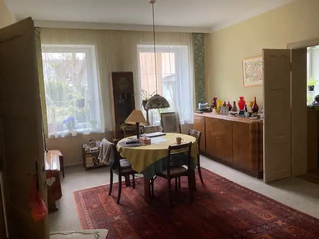 PARTER:3 pokoje w amfiladzie: ok. 29m2 ( z wejściem do kuchni ok. 8m2) , ok. 24m2, ok. 20m2 , przedpokój ok.4m2 z wejściem do łazienki ok.4m2 ., klatka schodowa ok. 14m2