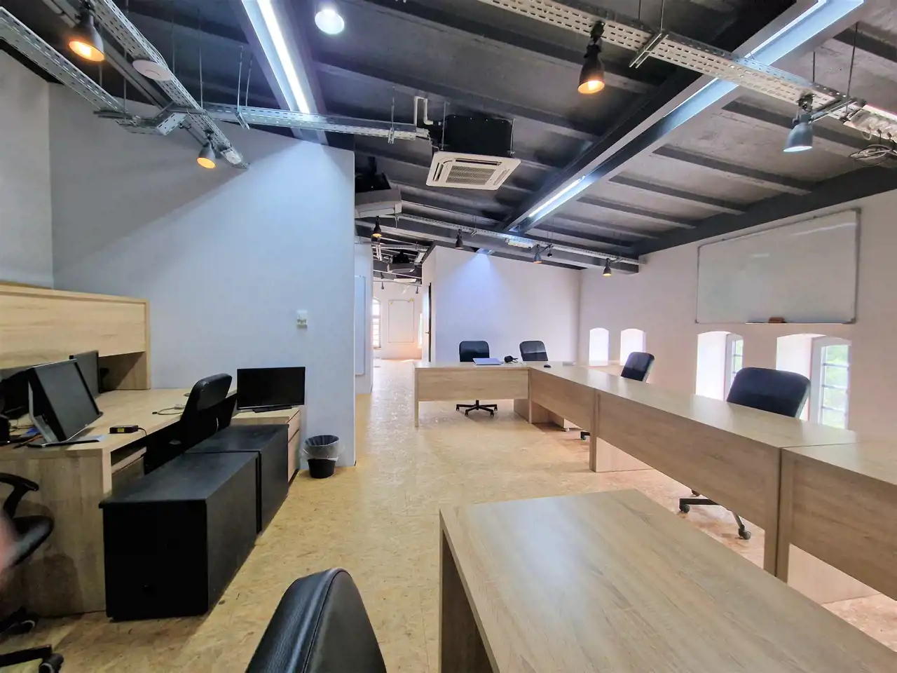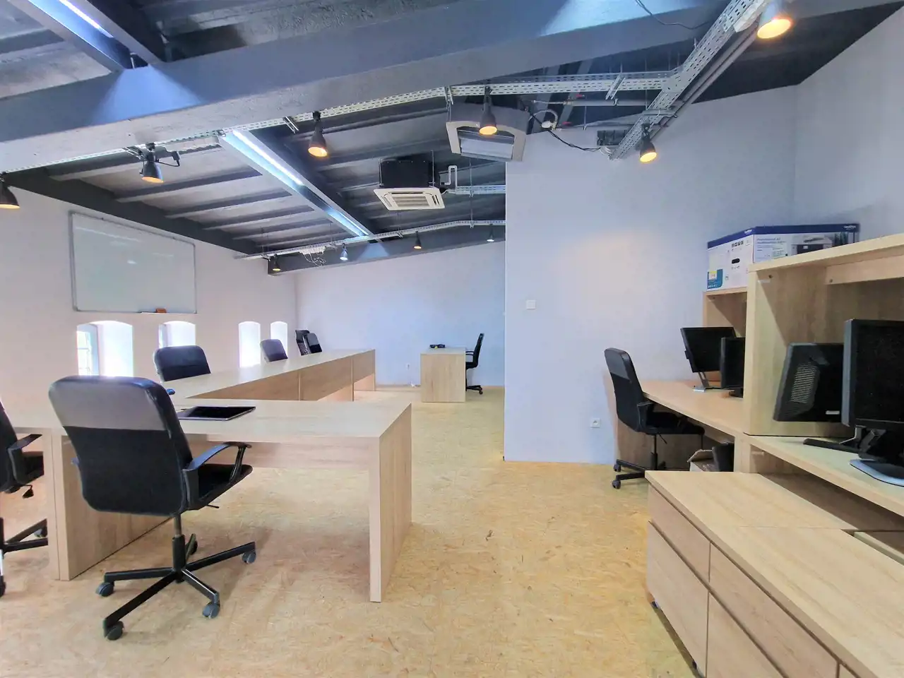 * Trzecią kondygnację (2 piętro w budynku) stanowią biura, open space, doskonale wyposażony pokój socjalny, toalety.