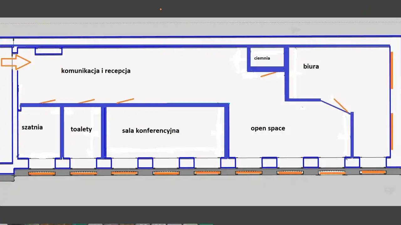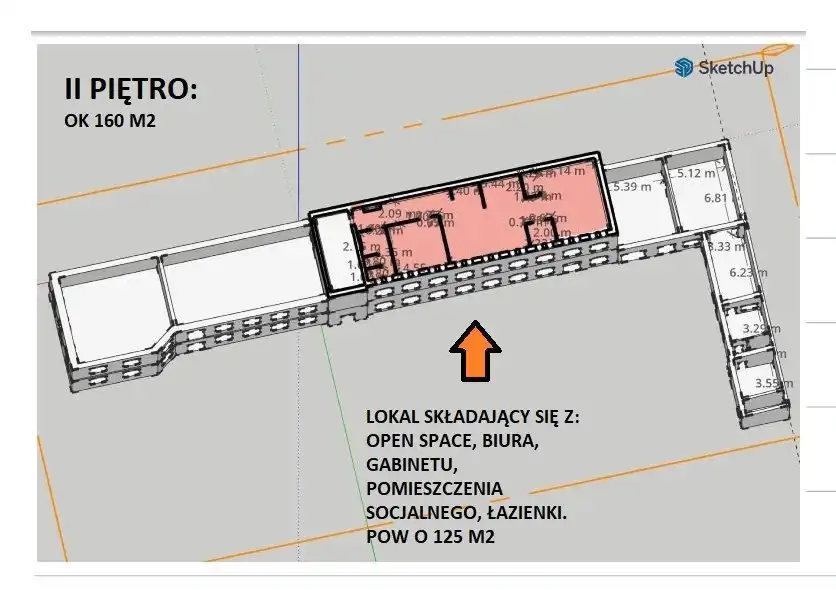 * Drugą kondygnację (1 piętro w budynku) stanowią: biura, sala konferencyjna, recepcja, open space, szatnia i toalety.