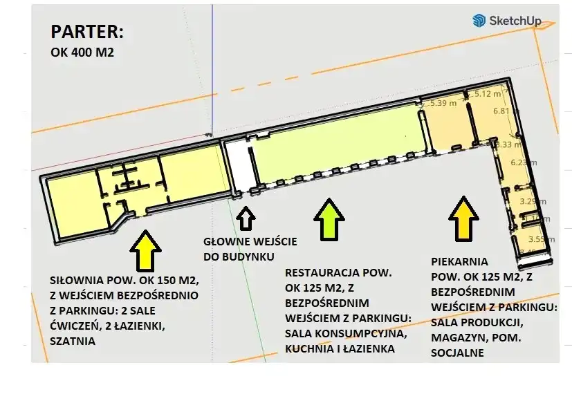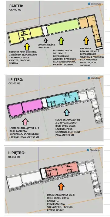 * Pierwszą kondygnację (Parter) stanowią niezależne lokale: restauracja, piekarnia i siłownia.