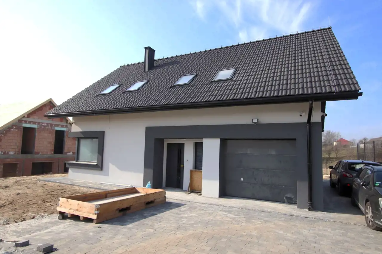 - Ocieplenie: styropian, elewacja tynk silikonowy