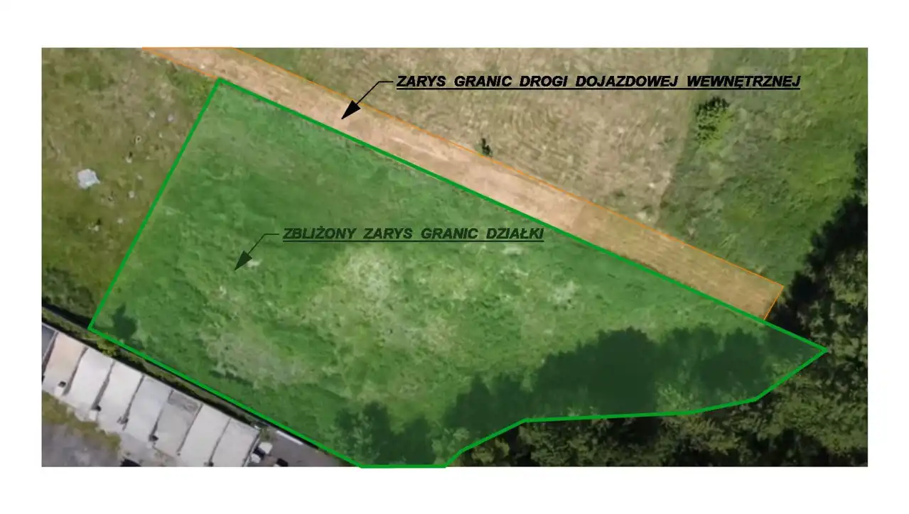 - Działka Niezagospodarowana, lekko nachylona, prostokąt