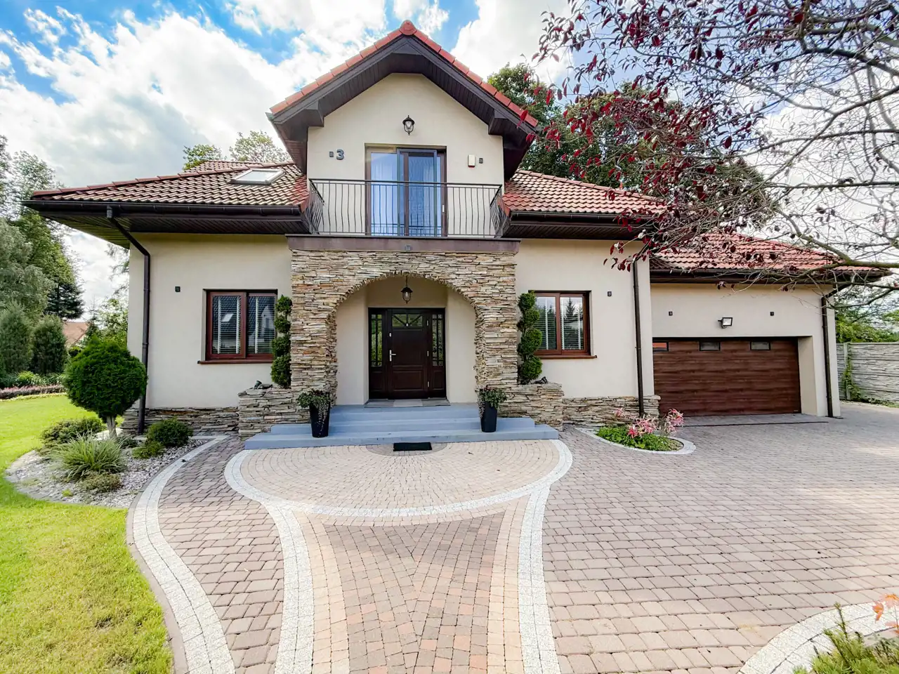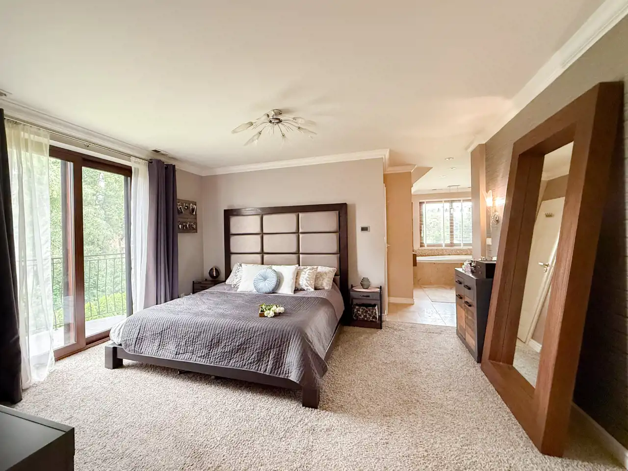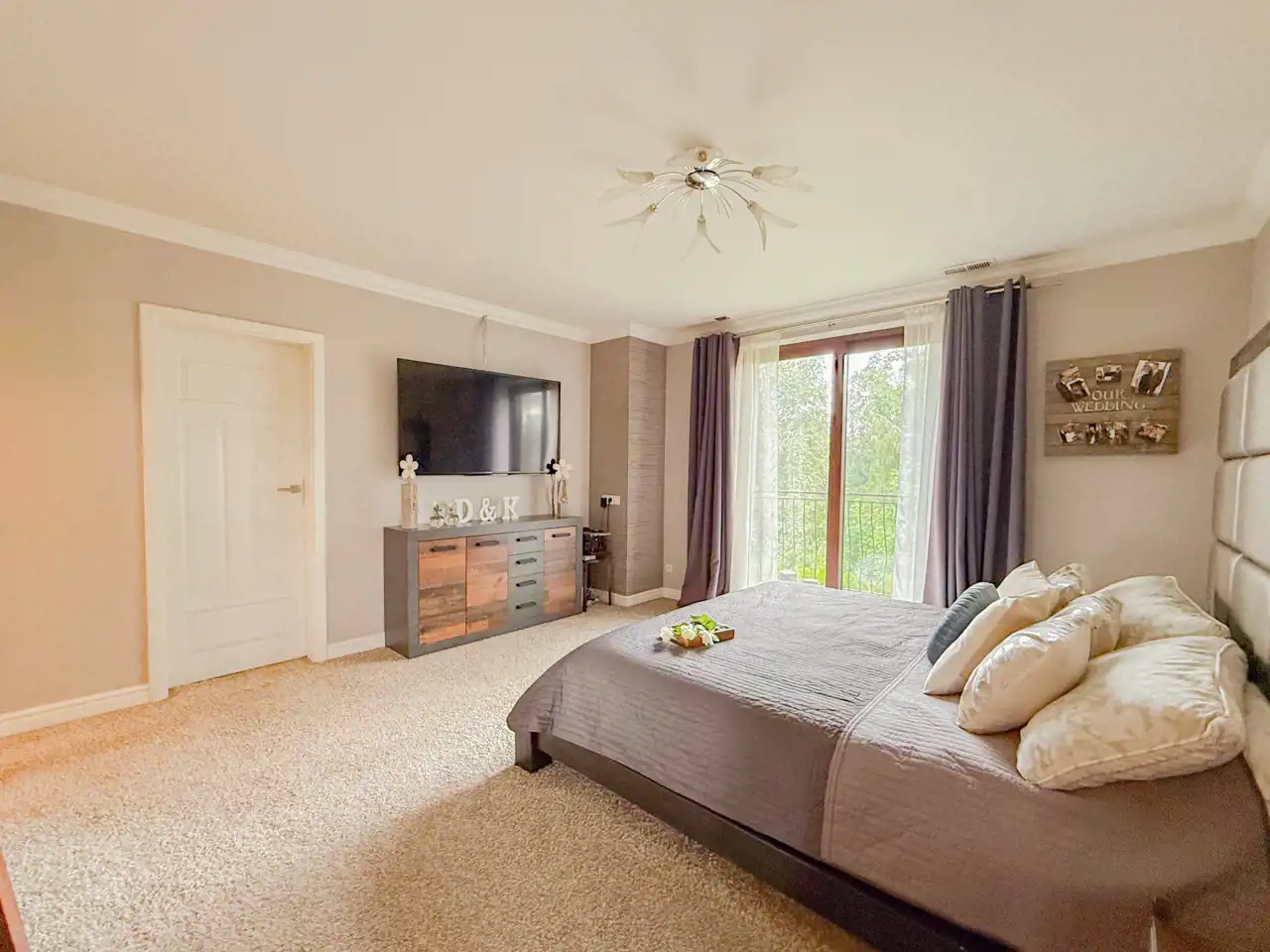 Pierwsza sypialnia jest z balkonem z dużym oknem na stronę od wjazdu na nieruchomość.