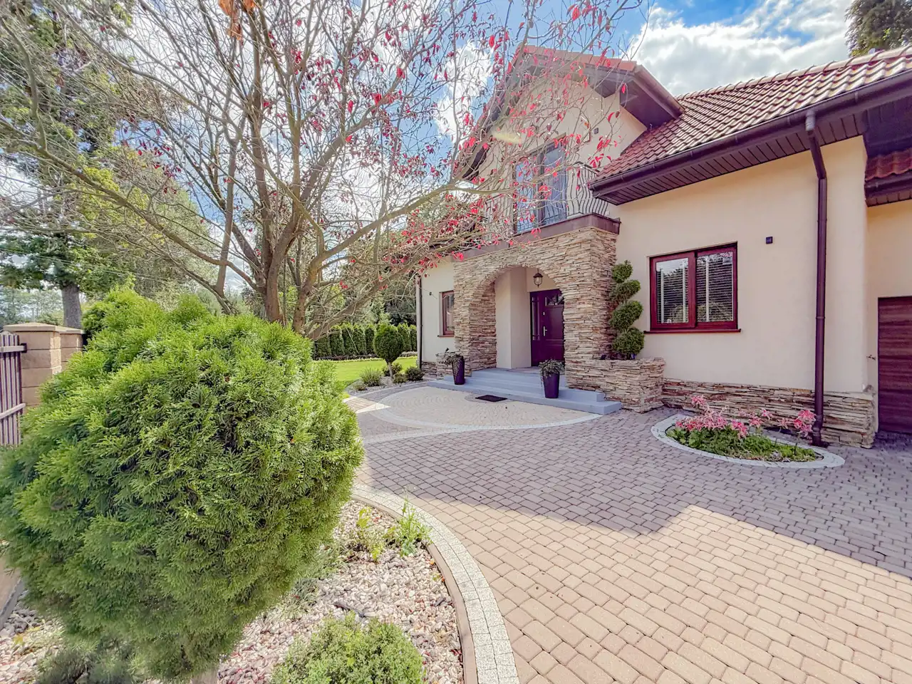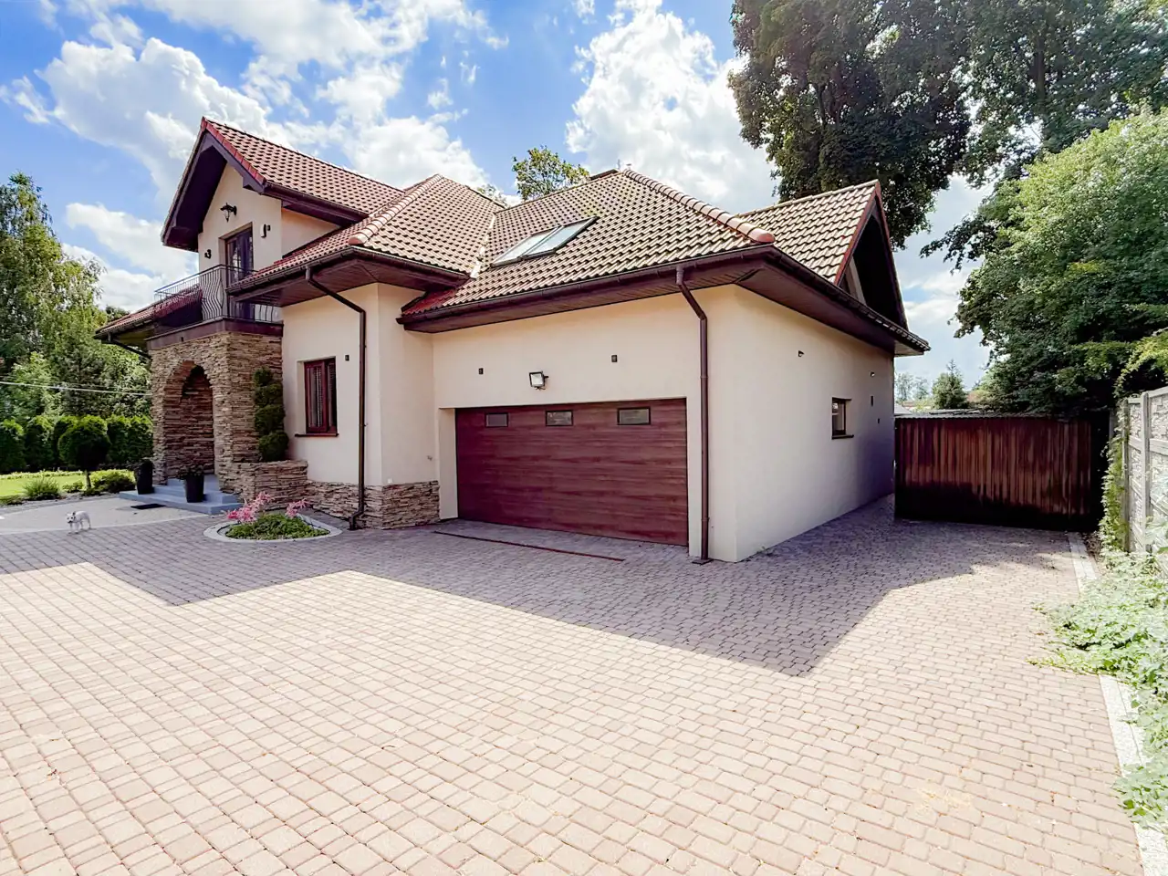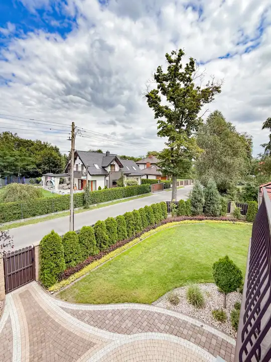 Nieruchomość jest bardzo estetycznie ogrodzona, z zewnątrz nie jest łatwo widoczna a sąsiedztwo mini lasku obok daje jeszcze większą atmosferę spokoju.