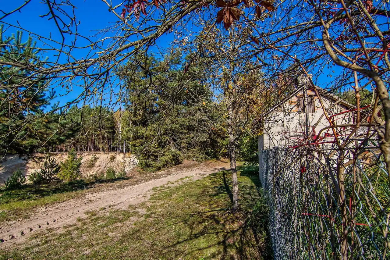 Nieruchomość graniczy od boku i tyłu z lasem a z zabudowaniami tylko po jednej stronie, ma bezpośredni dojazd drogą asfaltową. W odległości ok 400 m znajduje się przystanek.