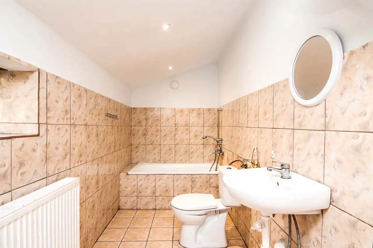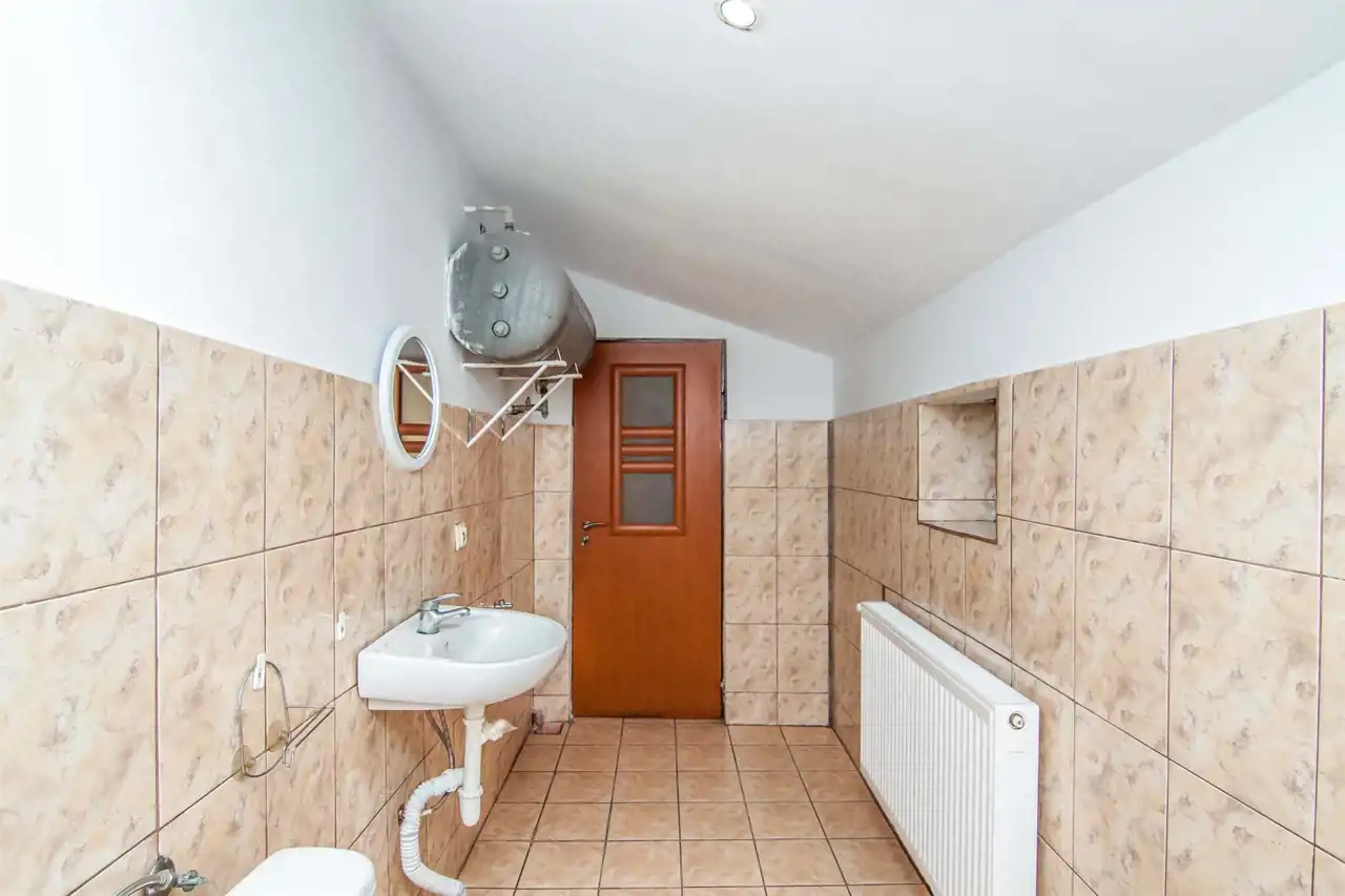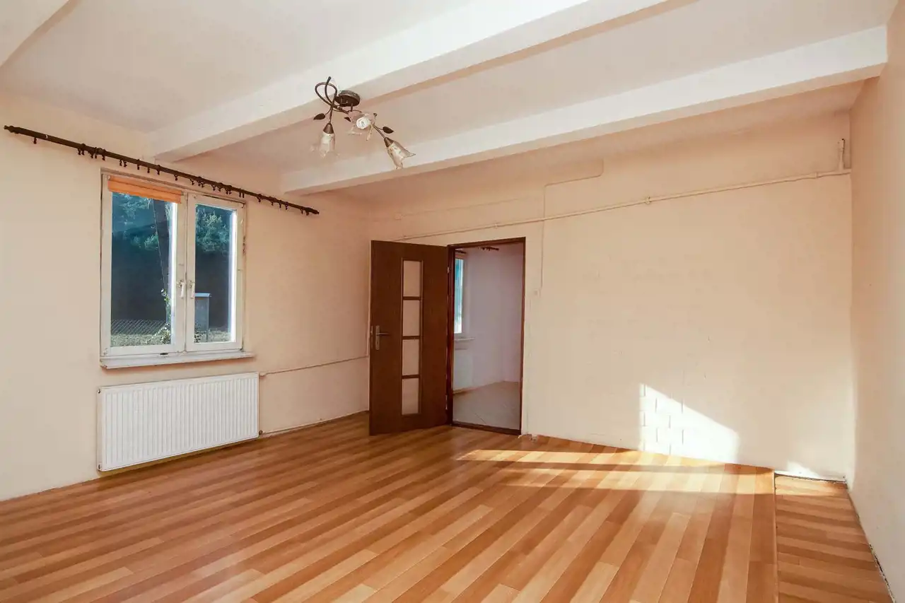Oferowany dom jest podpiwniczony, obmurowany z dachem krytym blachą. Na 58 m2 znajduje się łazienka, pokój i pokój z kuchnią.
