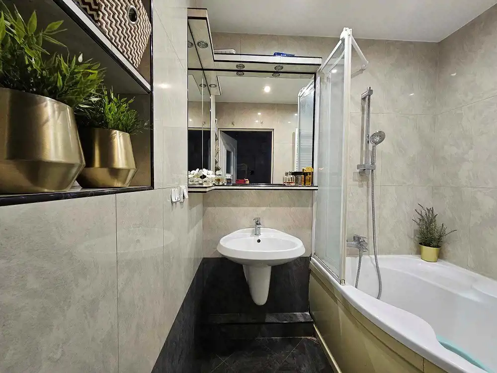 - dobrej jakości materiały wykorzystane do wykończenia wnętrza m.in kamienne podłogi w salonie, kuchni i łazience;