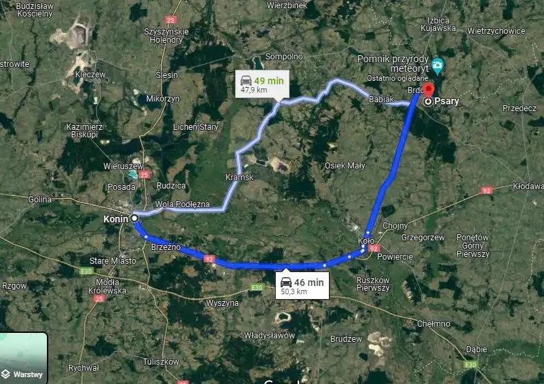 Działka znajduje się w kameralnej miejscowości Psary w gminie Babiak - miejscowości położonej między Jeziorem Brdowskim i Modzerowskim - 20 km od Koła i 50 km od Konina.