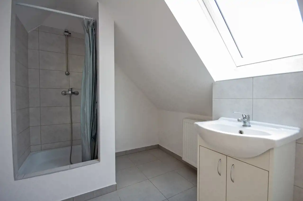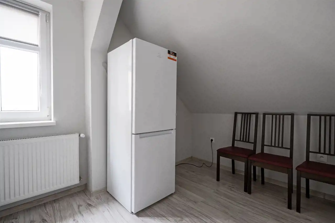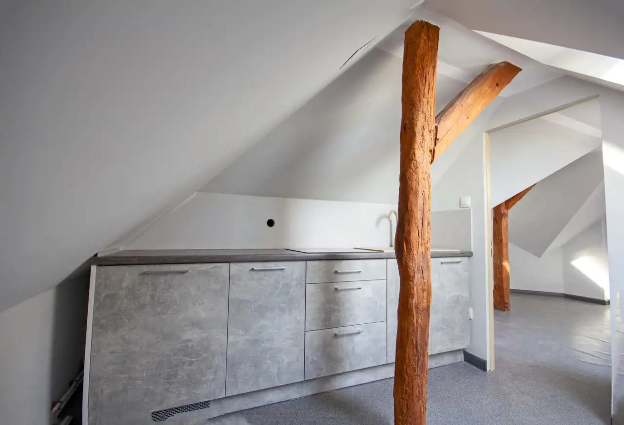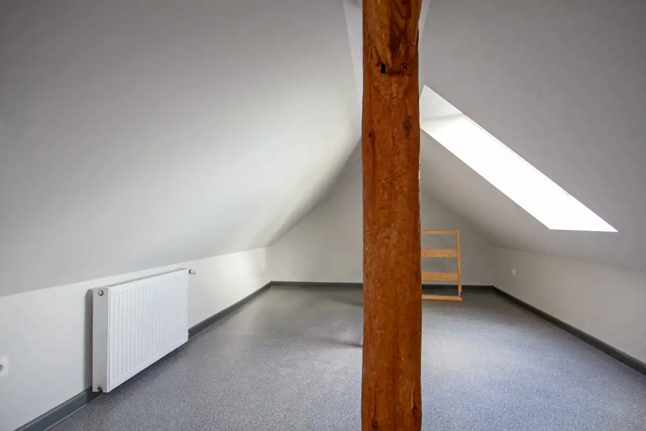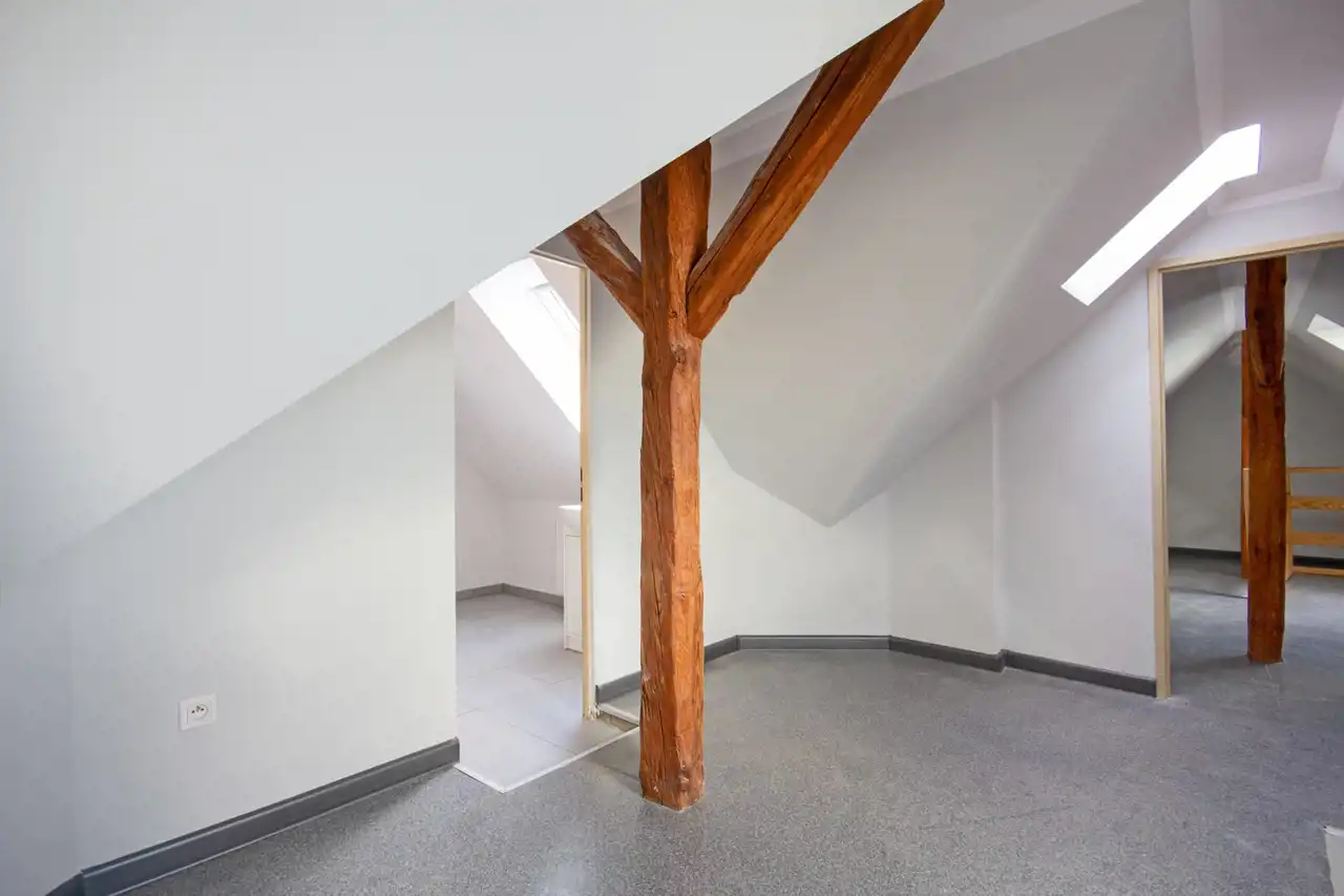 Mieszkanie numer 3, składające się z dwóch mieszkań o łącznej powierzchni 63,41 m2 znajduje się na I piętrze i poddaszu.