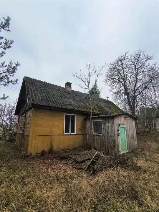 Dom: Stary, parterowy budynek mieszkalny do kapitalnego remontu. Powierzchnia użytkowa wynosi około 60 m². Wewnątrz znajdują się dwa pokoje, kuchnia, a także dobudowana sień oraz niewielkie pomieszczenie gospodarcze/magazynowe.