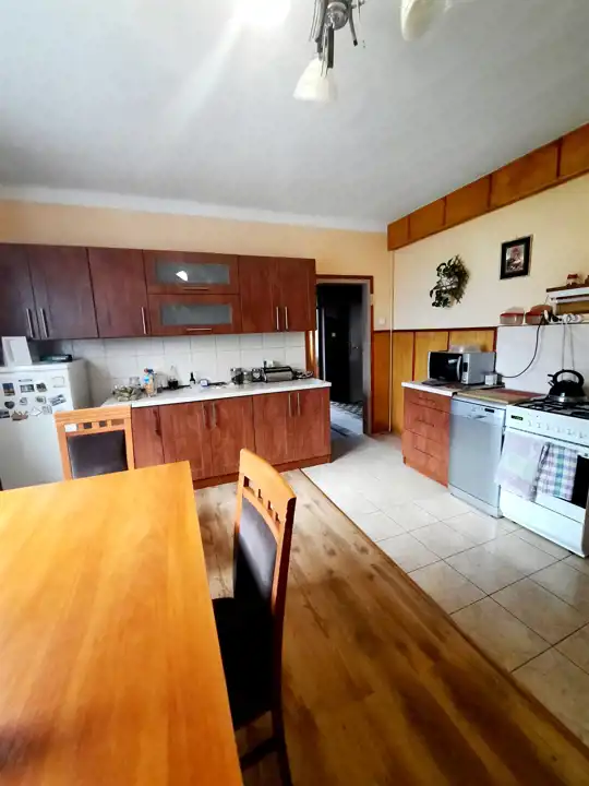 - otwartej przestrzeni kuchni połączonej z jadalnią