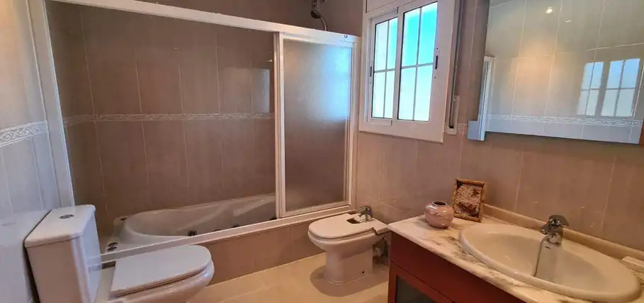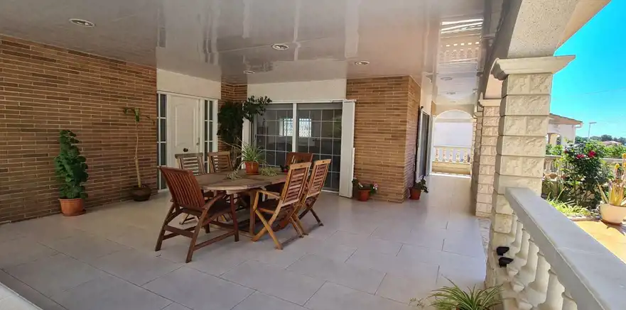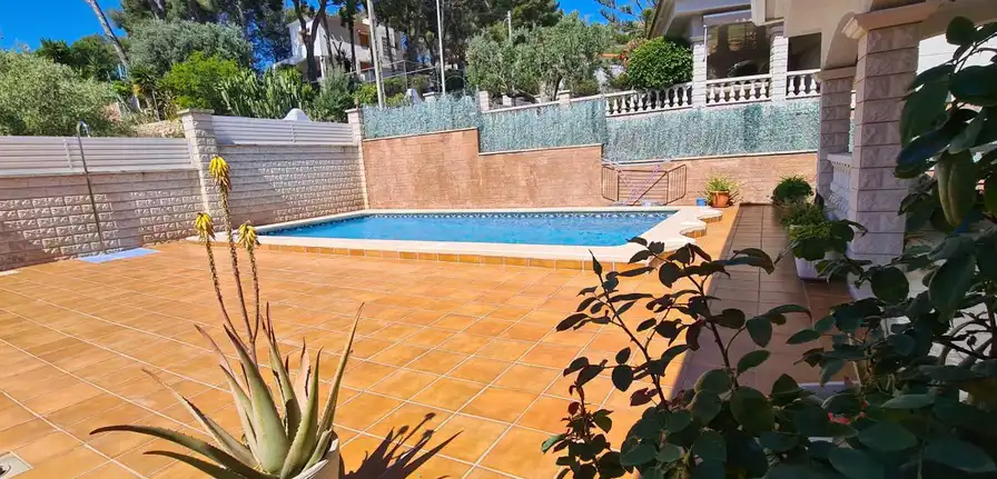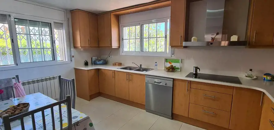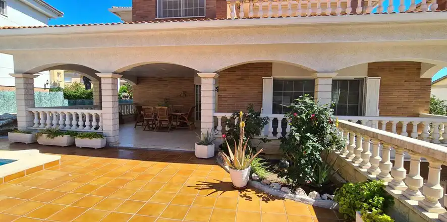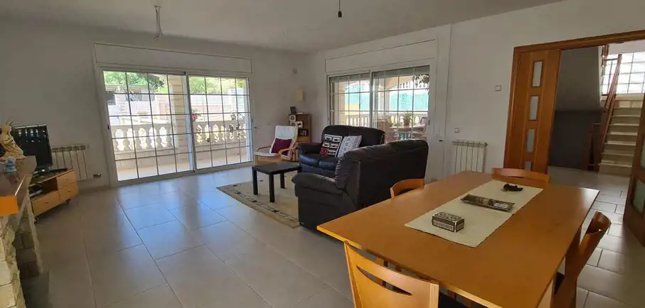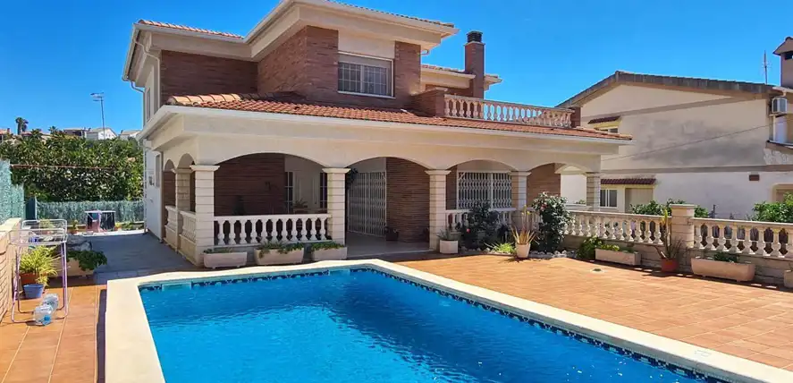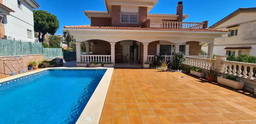 Wspaniała willa w Segur de Calafell, całkowicie niezależna, położona w Segur de Calafell, urbanizacja Segur de Dalt, w odległości 1500 metrów od plaży. Ma zabudowaną powierzchnię 388 m2, na działce o powierzchni 510 m2. Dom jest podzielony w następujący sposób: Wchodząc na posesję, wchodzimy do garażu poprzez zmotoryzowaną rampę, która daje nam dostęp do piwnicy, gdzie oprócz dużego garażu na 4 samochody mamy również pomieszczenie wykorzystywane jako maszynownia znajdujemy kocioł i zbiornik na olej napędowy, wychodząc przez drzwi przeciwpożarowe na tym samym piętrze, uzyskujemy dostęp do dwóch pokoi, jednego używanego jako biuro i magazyn, a drugiego jako pokój gier. Wchodząc po schodach wchodzimy na parter, gdzie znajdziemy duży hol, salon-jadalnię z kominkiem i wyjściem na dużą werandę oraz basen, dużą niezależną wyposażoną kuchnię, pomieszczenie na pralnię, w pełni wyposażoną łazienka i sypialnia. Wchodzimy po schodach na pierwsze piętro i tam przechodzimy do części wypoczynkowej, gdzie znajdziemy trzy sypialnie (jedna z nich to apartament z garderobą, pełną łazienką, pokój ma wyjście na duży taras do opalania) oraz kolejna pełna łazienka dla przyjemności pozostałych dwóch pokoi. Na zewnątrz domu znajduje się ogród, weranda, basen, taras i grill. Dom posiada wysokiej jakości szafy wnękowe, stolarkę wewnętrzną drewnianą, stolarkę zewnętrzną aluminiową z podwójną szybą, moskitiery oraz ogrzewanie olejowe. Jeśli chcesz mieszkać w spokojnej okolicy, blisko plaży i wszystkich usług, takich jak szkoły, supermarkety, centra medyczne, szpitale, sklepy i wszelki dostęp samochodem, autobusem i pociągiem do Barcelony lub Tarragony, przyjdź i zobacz To!