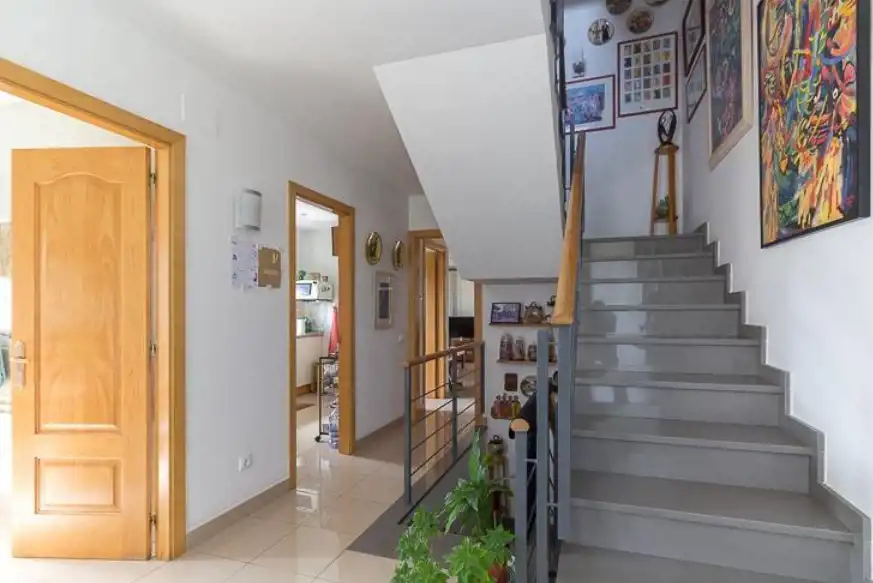 Wszystkie poziomy połączone są wewnętrzną klatką schodową. Dom posiada ogrzewanie we wszystkich pokojach i 3 klimatyzatory (jadalnia, pokój dwuosobowy i poddasze).