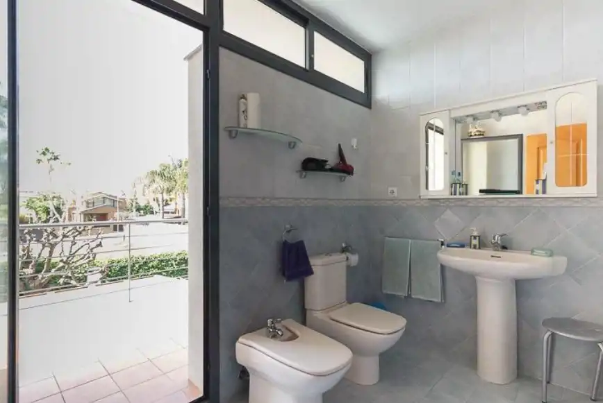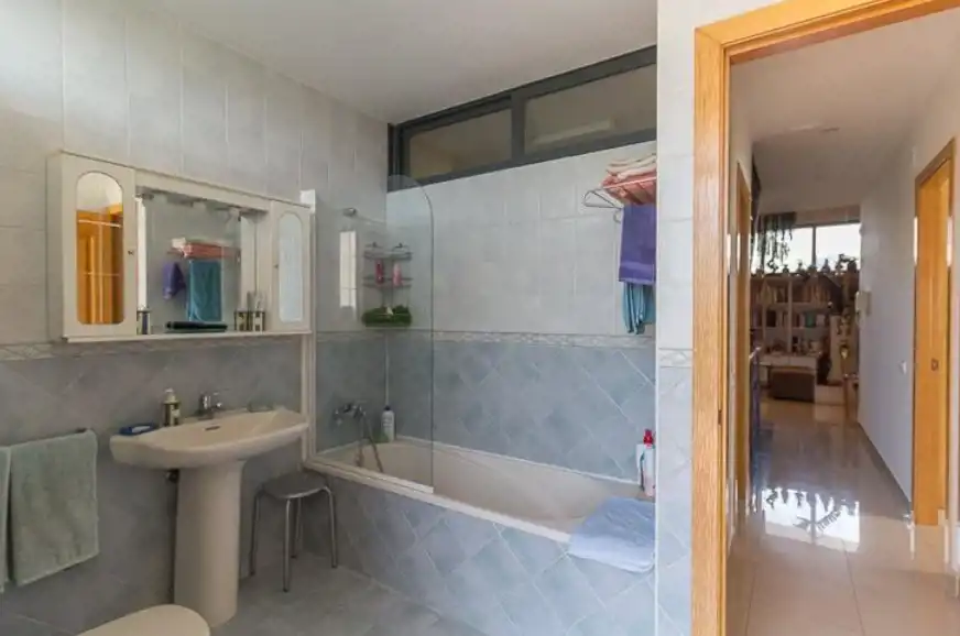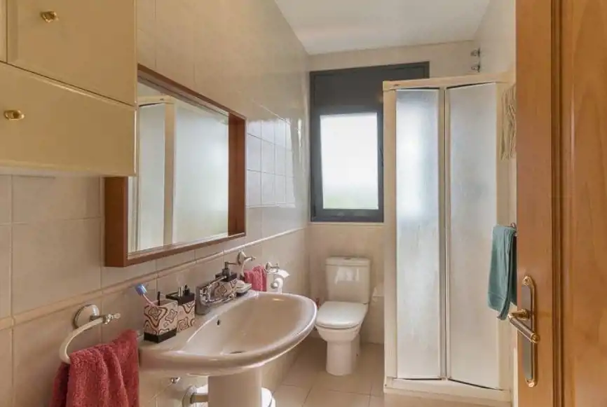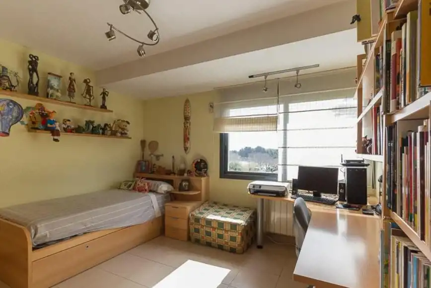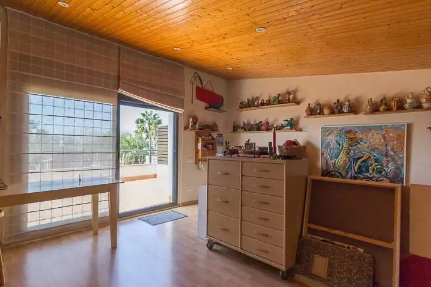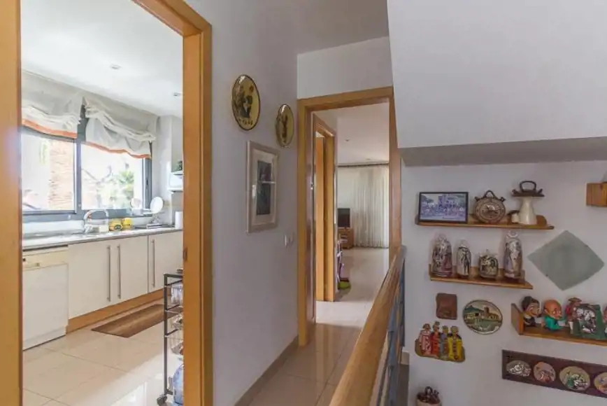 Na pierwszym piętrze znajdują się 2 dwuosobowe sypialnie (jedna z nich z wyjściem na taras na tym piętrze), pralnia i kolejna bardzo przestronna, w pełni wyposażona łazienka, która daje nam dostęp do tego samego tarasu. Oprócz tych pokoi na tym piętrze znajduje się otwarta przestrzeń, którą można przekształcić w kolejny pokój dwuosobowy; lub po prostu zostaw go jako przestrzeń do gier lub salonu itp. Poziom ten składa się z 80m2 zabudowy.