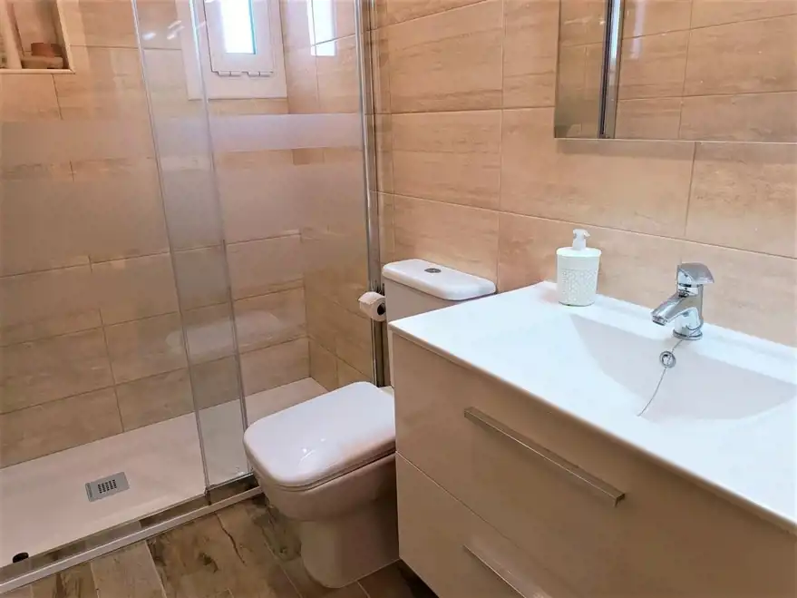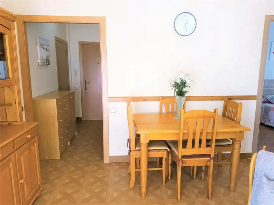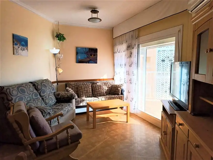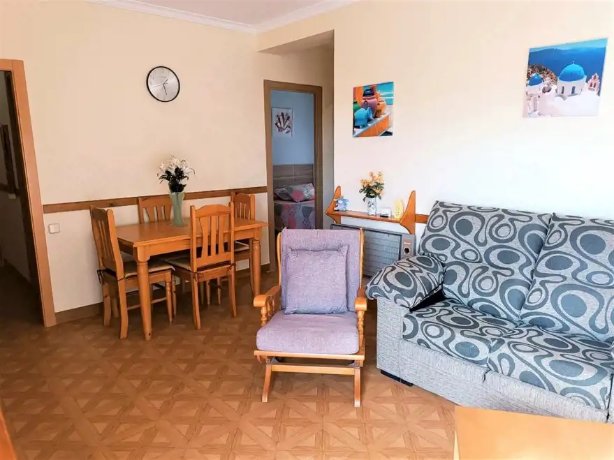 Mieszkanie na pierwszej linii bocznej ale ze względu na boczne położenie, taras ma widok z przodu na port. Mieszkanie o powierzchni 56,5m2 podzielony jest na dwie dwuosobowe sypialnie, które mają wbudowane szafy, całkowicie odnowioną łazienkę z prysznicem, niezależną kuchnię oraz salon z wyjściem na taras. Komórka lokatorowa, oraz parking w zależności od dostępności. Nieruchomość posiada windę. Blisko barów i sklepów i zaledwie 50 metrów od plaży.