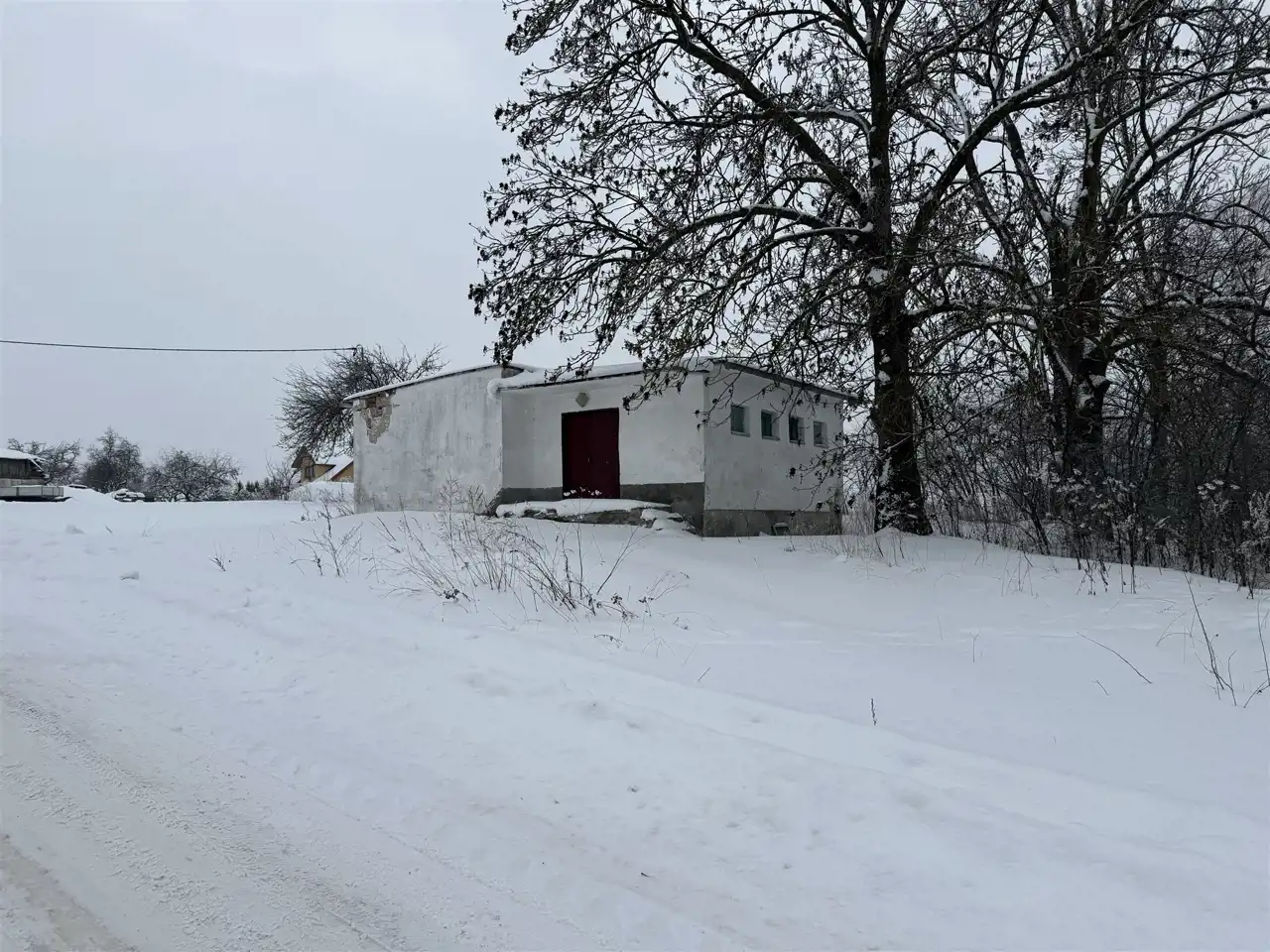 Murowany, parterowy budynek został wybudowany latach 60-tych – pełnił funkcję punktu skupu mleka. Fundamenty budynku są betonowe, ściany z pustaków i cegieł. Stropodach konstrukcji żelbetowej, kryty papą. Posadzki cementowe, lastryko.