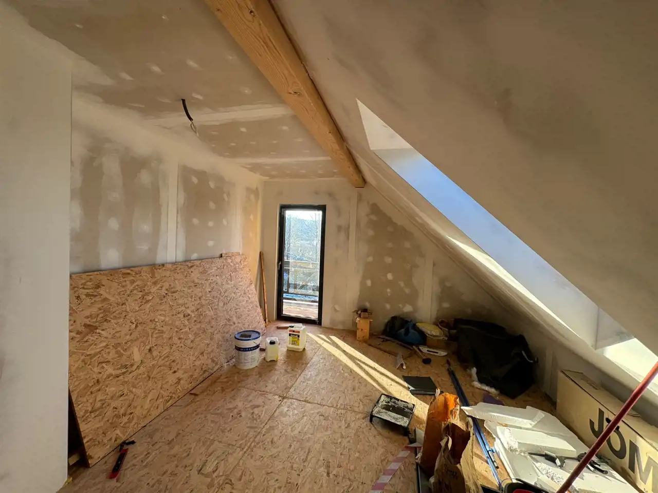 Została rozprowadzona instalacja wewnętrzna w budynku: elektryczna, wykonano wylewki.
