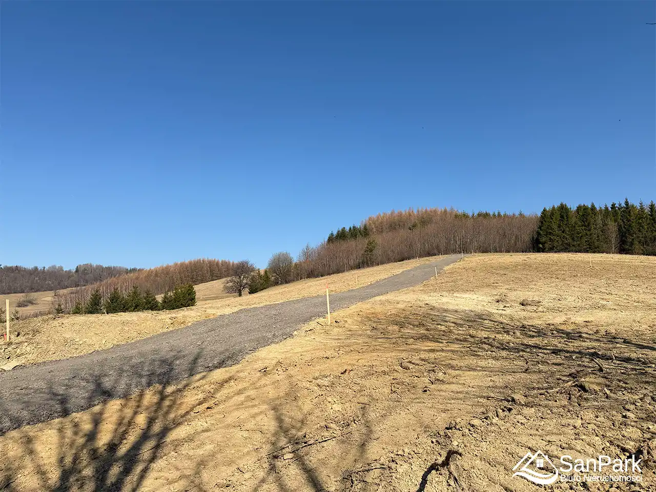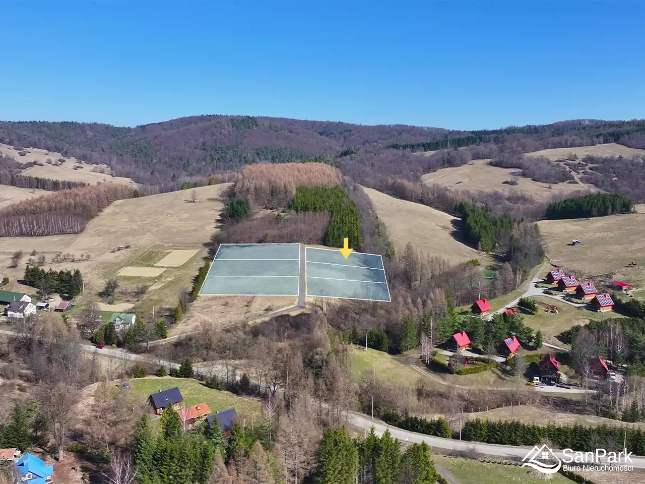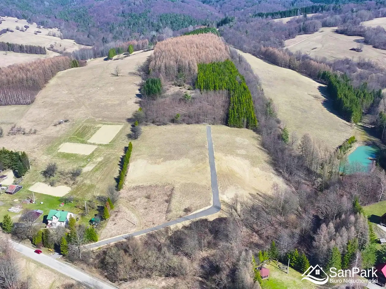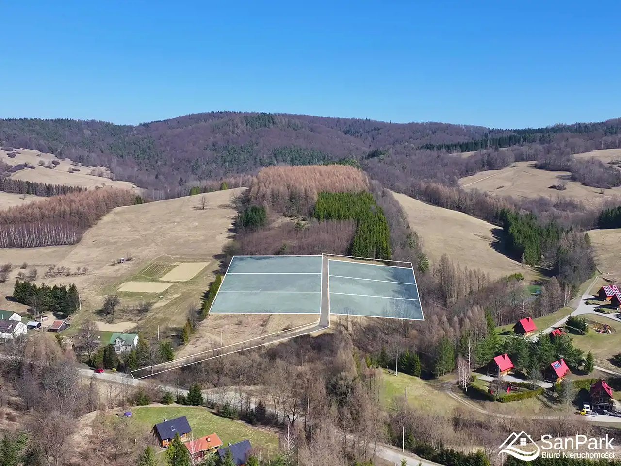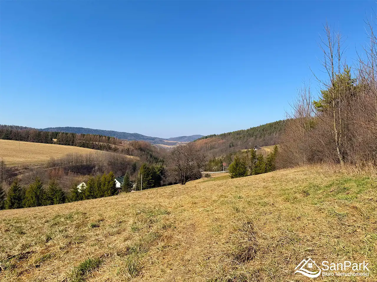 Nieruchomość znajduje się na wzniesieniu, dzięki czemu rozciąga się z niej piękny widok na okoliczne wzgórza i tereny zielone. Działka jest lekko nachylona, grunty klasy IV i VI.
