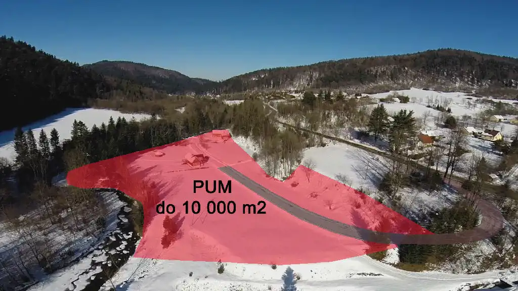 Działka o powierzchni 2,59 ha to absolutnie wyjątkowa , malownicza dolina górska otoczona lasem i przylegającą do niej rzeką Jabłonką- Hoczewką .