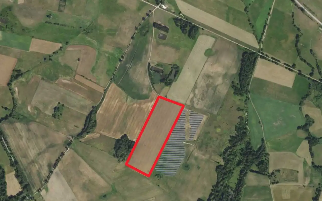 Nieruchomość położona na obrzeżach kameralnej miejscowości w otoczeniu gruntów ornych i farmy fotowoltaicznej. Najbliższe zabudowania znajdują się w promieniu 500 metrów. Kształt działki zbliżony do prostokąta o orientacyjnych wymiarach 390 m x 142 m.