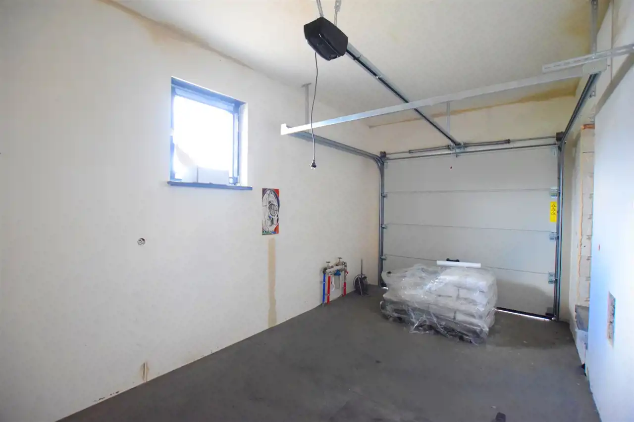 - Pomieszczenia to salon z aneksem kuchennym, dwie sypialnie, łazienka, wc, kotłownia, wiatrołap, garaż jednostanowiskowy, taras