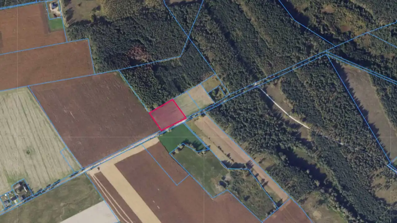 Parcela graniczy od pónocy ze ścianą lasu na całej szerokości.