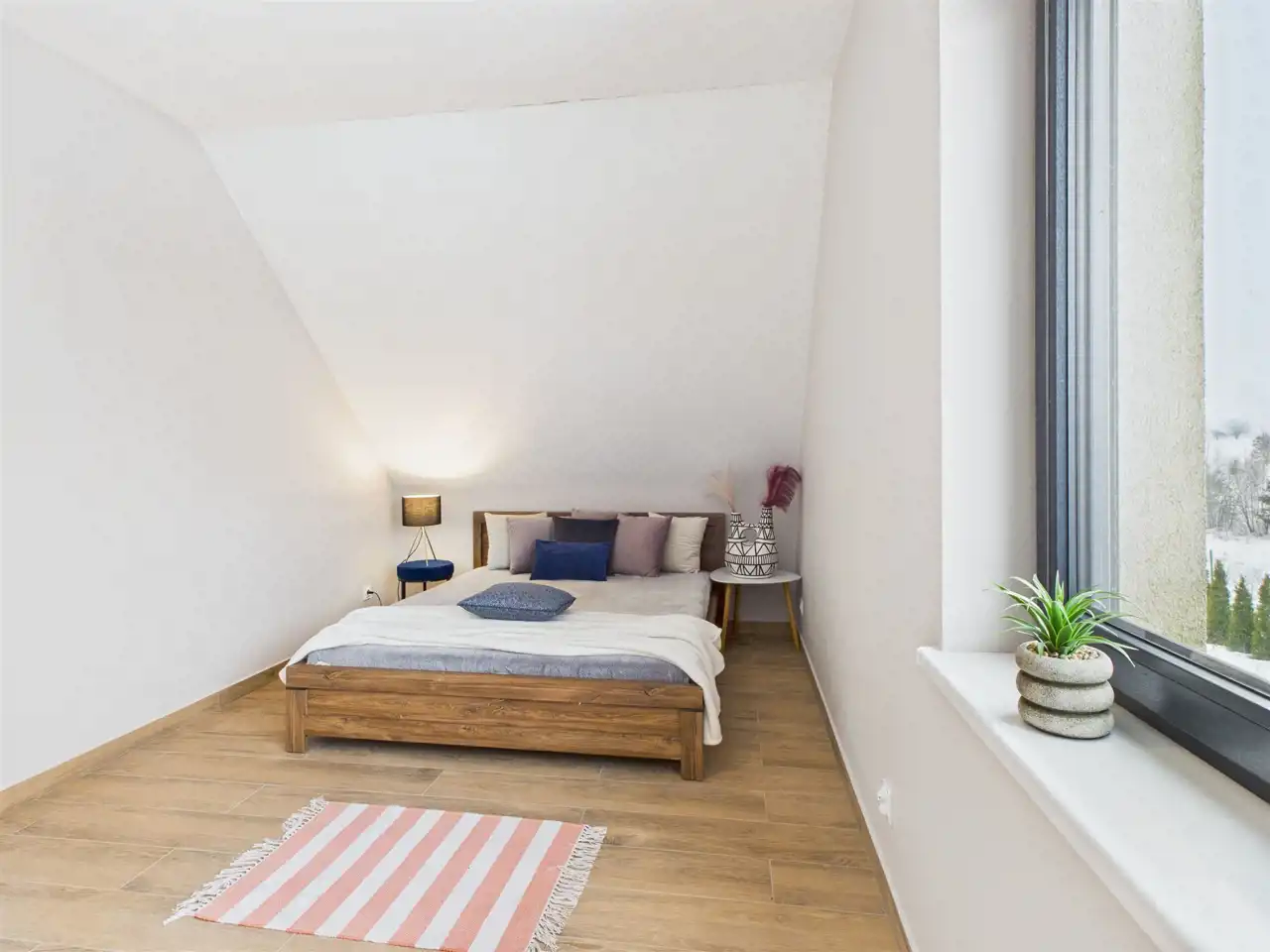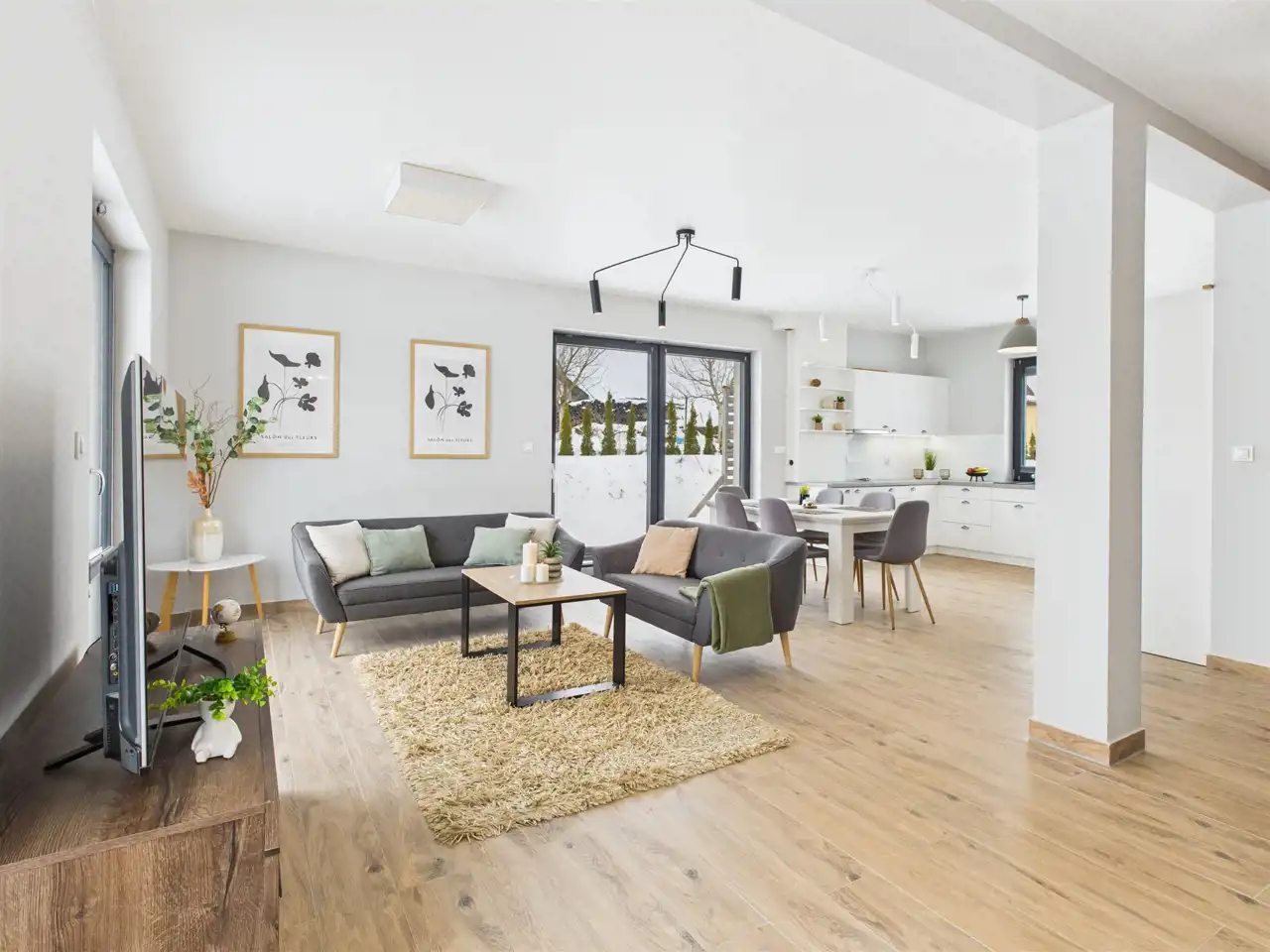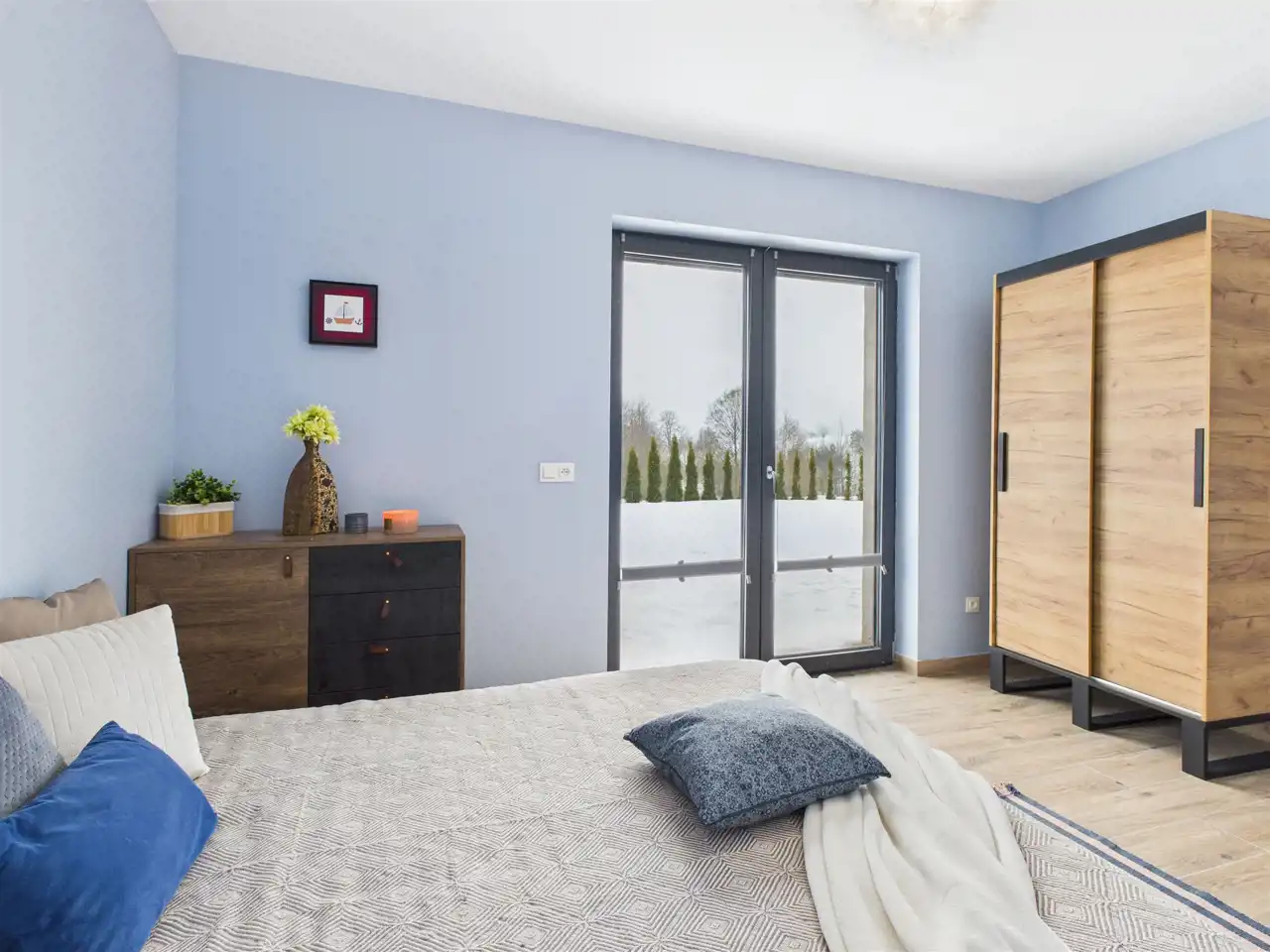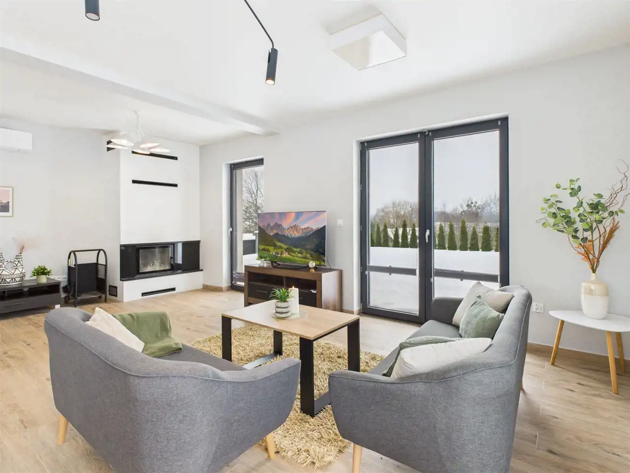 Na podłogach w całym domu gres. Ogrzewanie podłogowe, piec elektryczny oraz dodatkowo kominek z rozprowadzeniem ciepła na pomieszczenia. Ponadto, wszystkie sypialnie i salon zostały wyposażone w indywidualne klimatyzatory z funkcją grzania (5 mini pomp ciepła). Dodatkowo zakupiona została pompa ciepła, która również jest w cenie nieruchomości.
