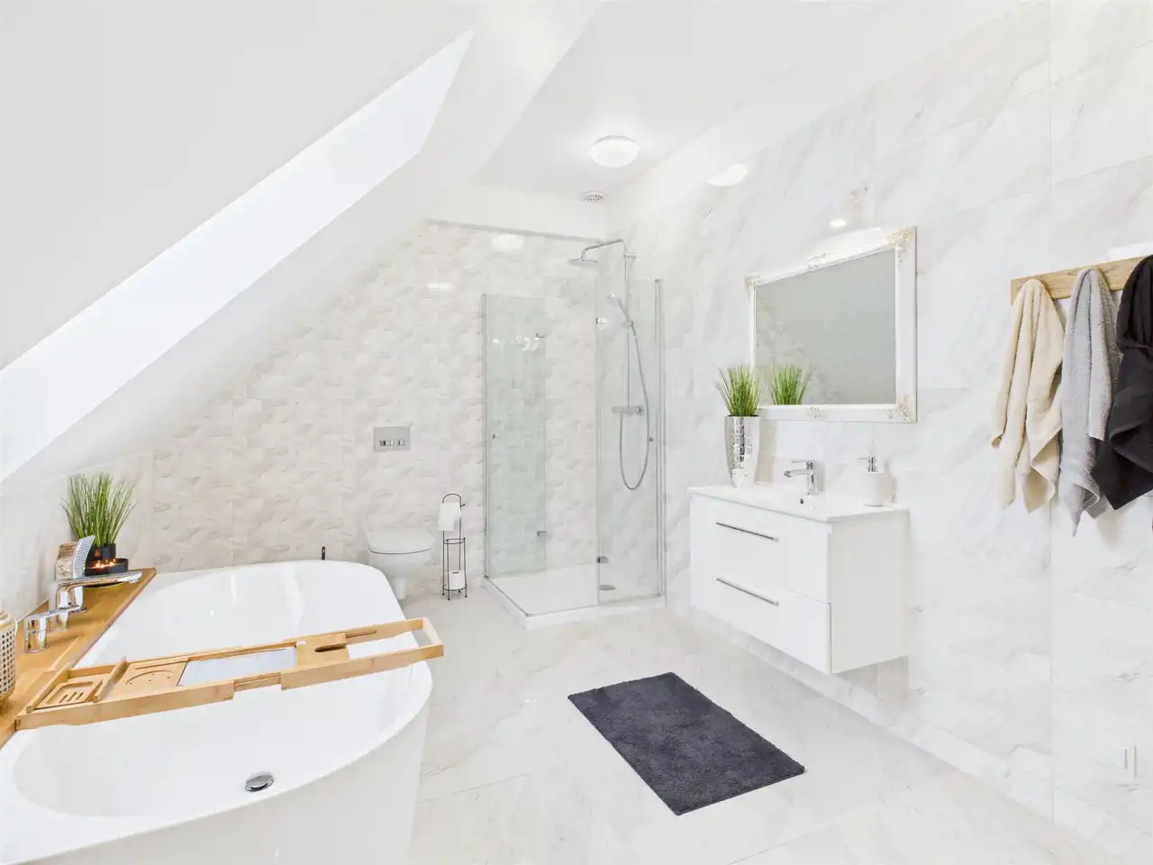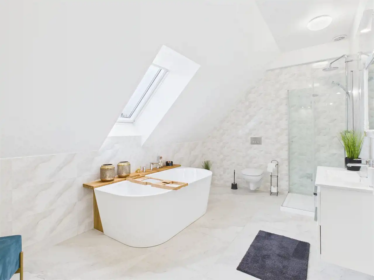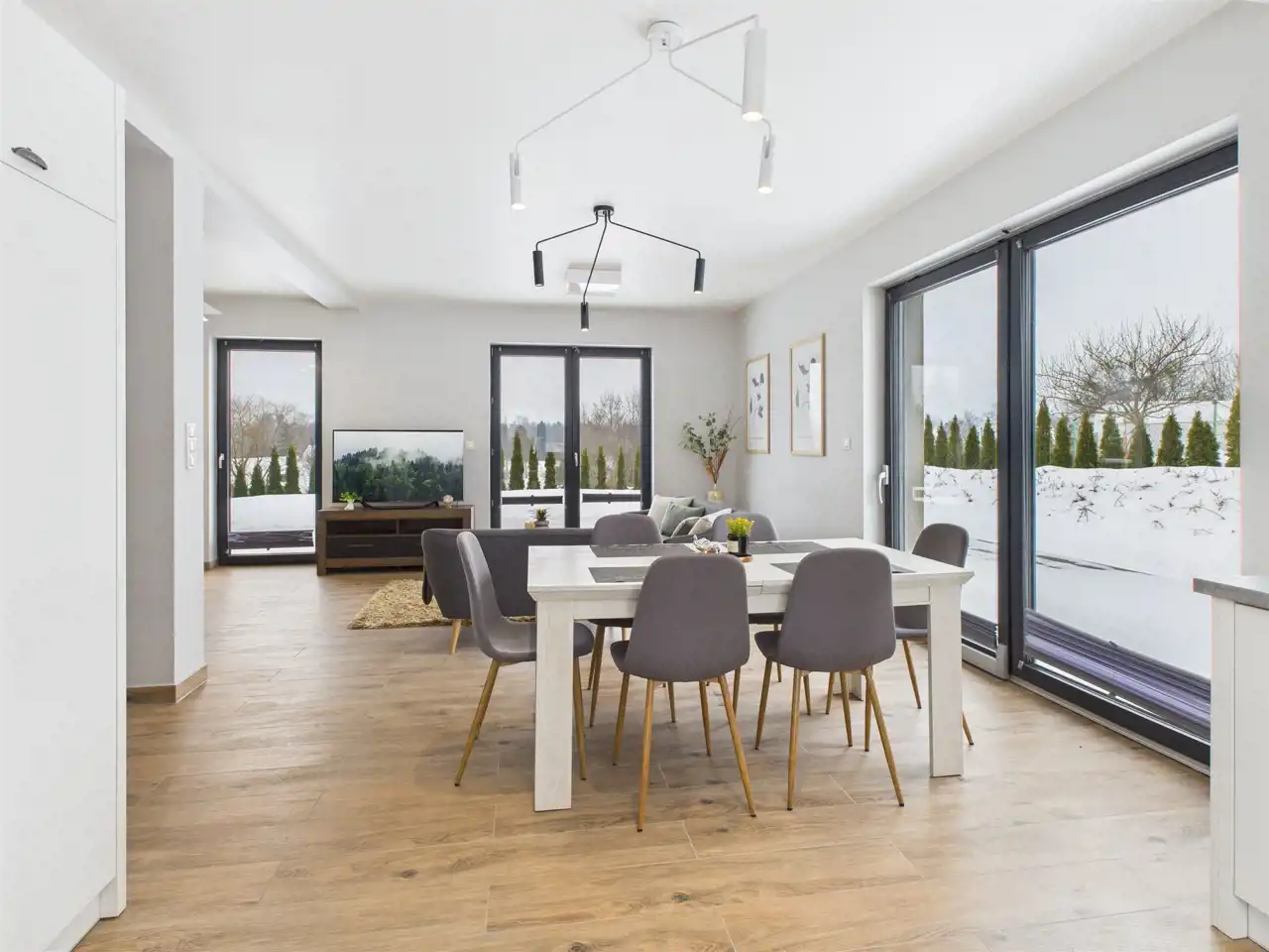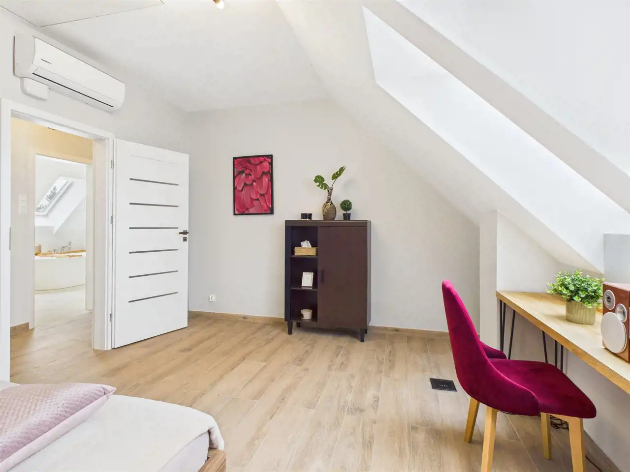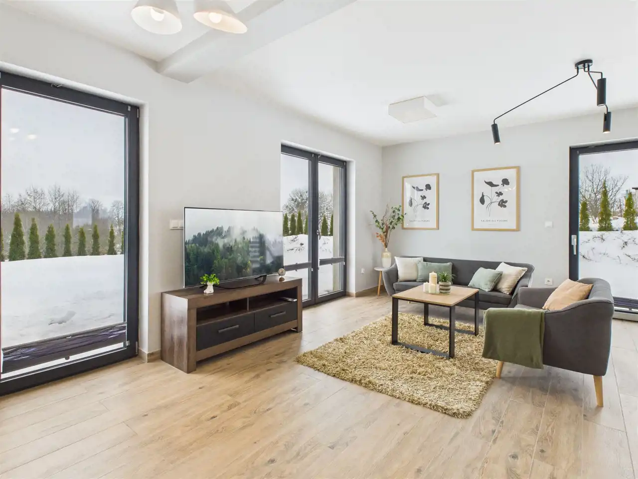 Na podłogach w całym domu gres. Ogrzewanie podłogowe, piec elektryczny oraz dodatkowo kominek z rozprowadzeniem ciepła na pomieszczenia. Ponadto, wszystkie sypialnie i salon zostały wyposażone w indywidualne klimatyzatory z funkcją grzania (5 mini pomp ciepła). Dodatkowo zakupiona została pompa ciepła, która również jest w cenie nieruchomości.