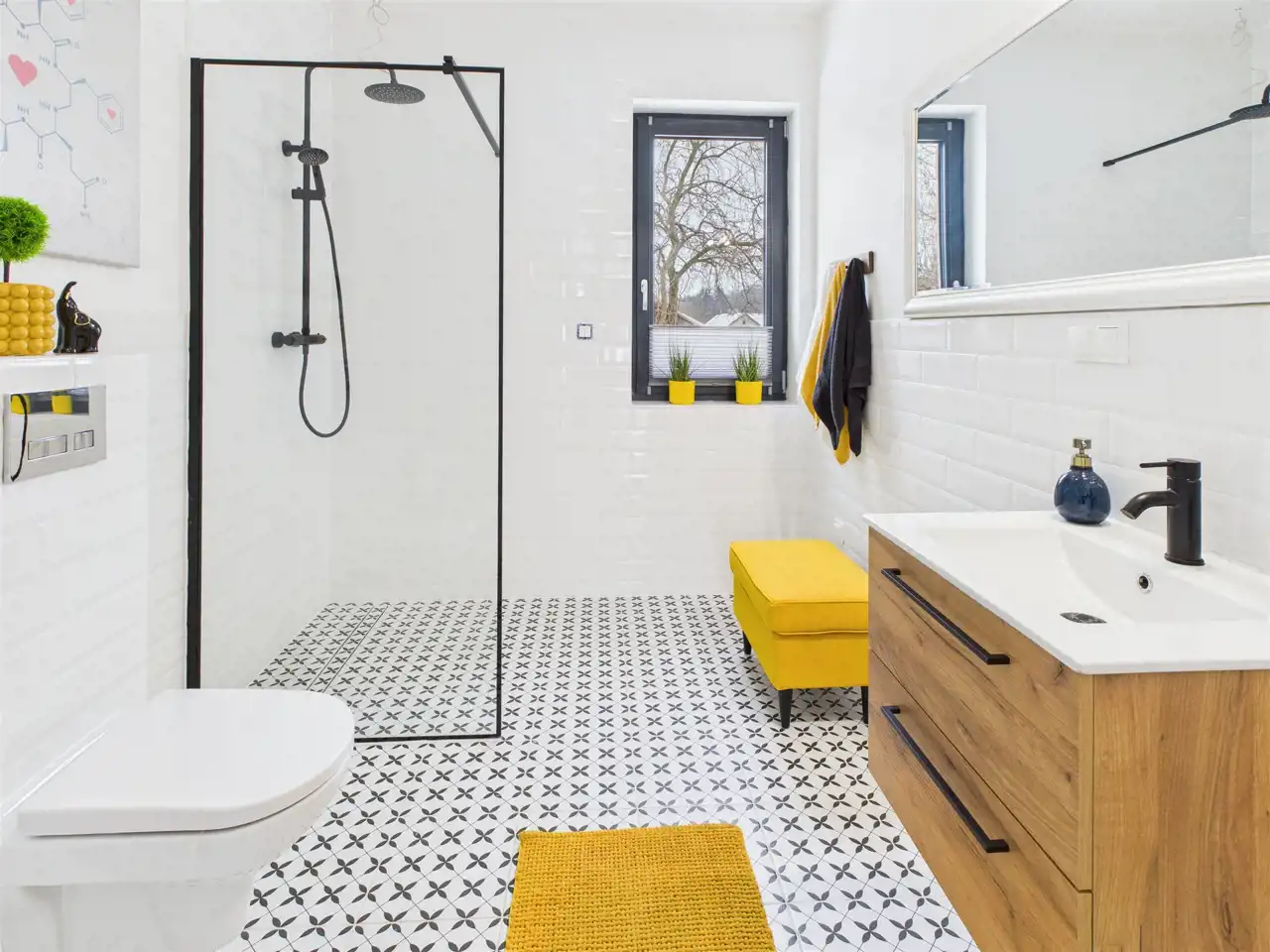 Warto wspomnieć, że zarówno ogród, wejście do domu oraz cały parter może być użytkowany przez osoby niepełnosprawne - brak progów, wszystko jest na jednym poziomie bez barier.