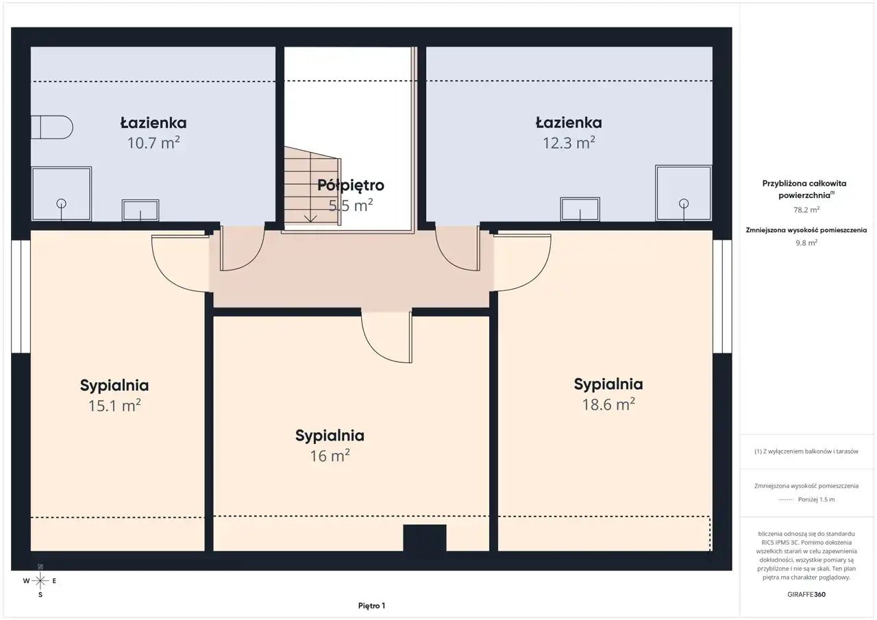 1 piętro: 3 oddzielne sypialnie i 2 łazienki.