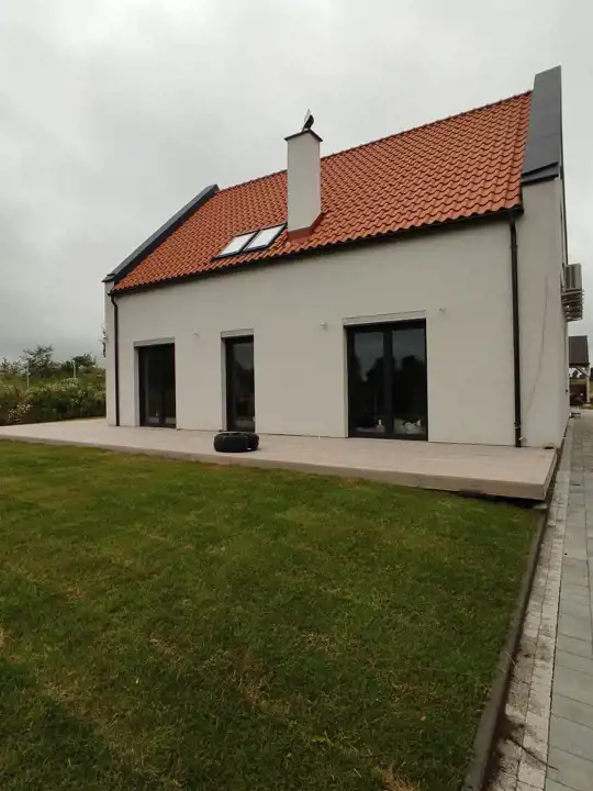 Do sprzedaży przedstawiam piękny, nowoczesny dom jednorodzinny w Skajbotach w gminie Barczewo, usytuowany na obszernej zagospodarowanej działce o łącznej powierzchni 2322 m2. Nieruchomość składa się z dwóch działek: jedna działka zabudowana domem o pow. 1543 m2 oraz druga rolna o powierzchni 780 m2 z wydanymi warunkami na budowę takiego samego domu jednorodzinnego.