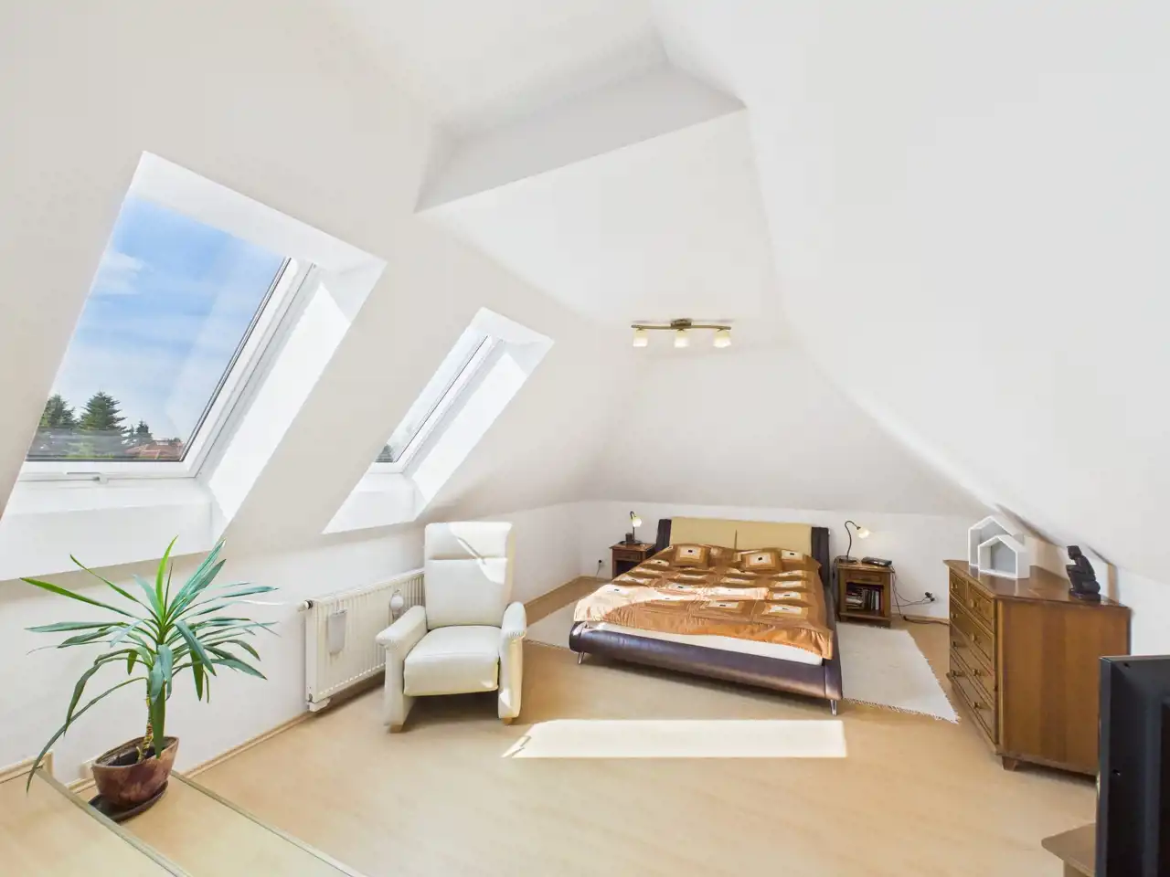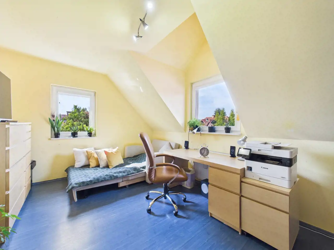 - Poddasze użytkowe: przedpokój, 3 sypialnie (z nowymi oknami dachowymi), łazienka, garderoba,