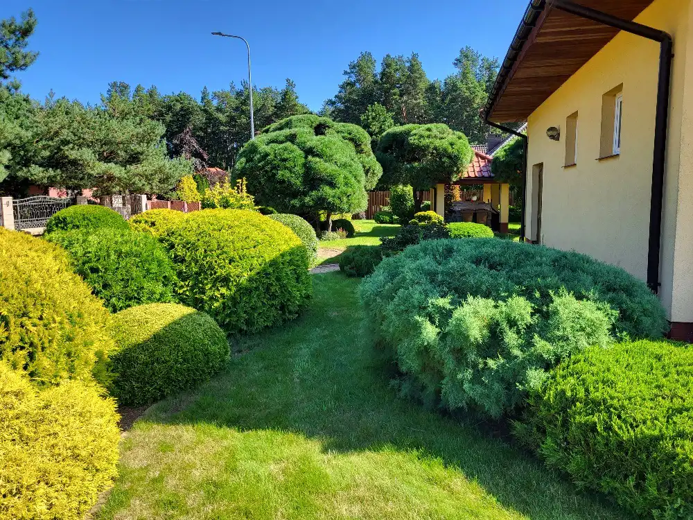 - tuje, cisy, bukszpan, wiąz, sosna.