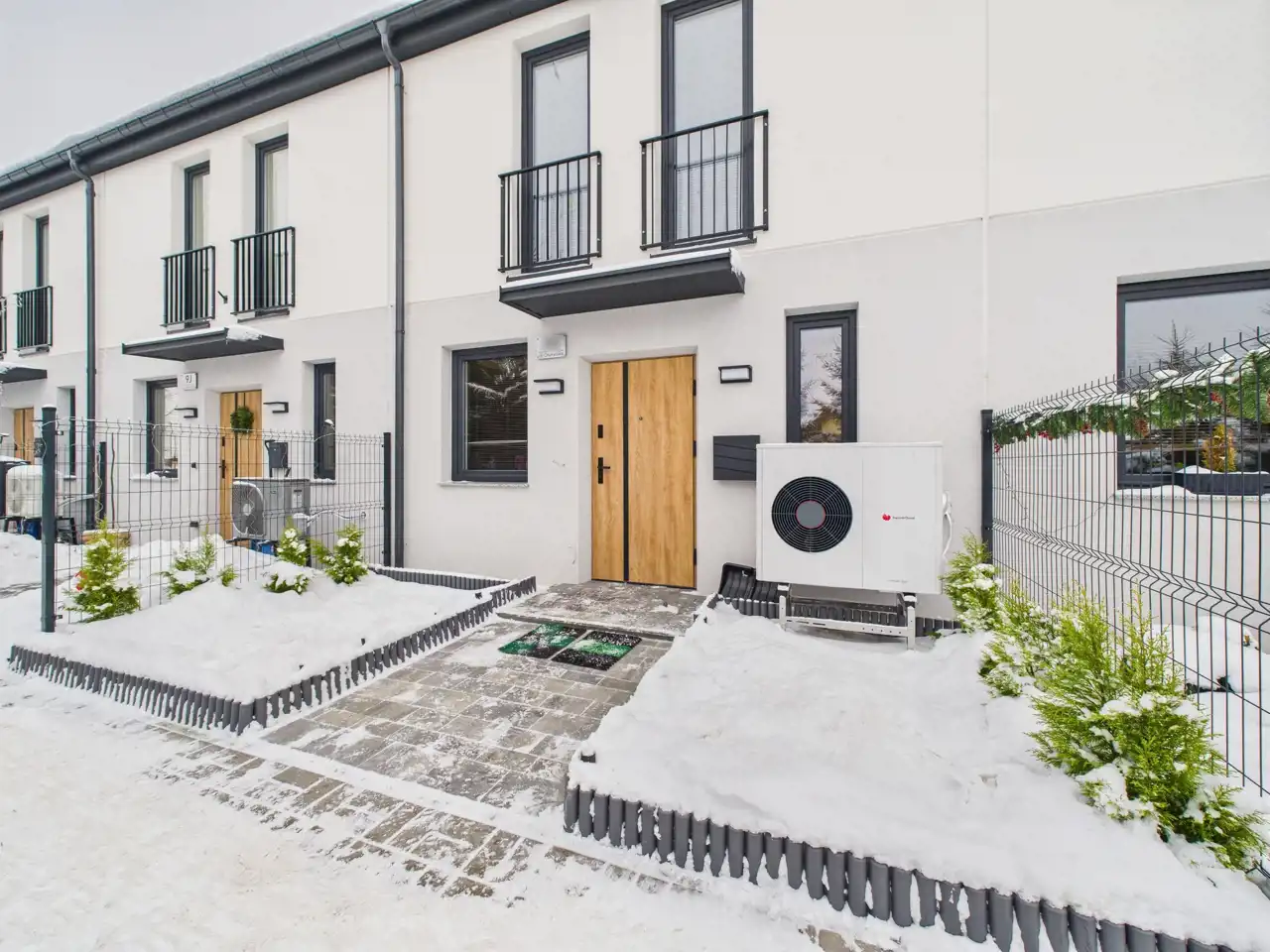 Dom ogrzewany jest nowoczesną pompą ciepła, co przekłada się na niskie koszty eksploatacji oraz ekologiczny charakter inwestycji.