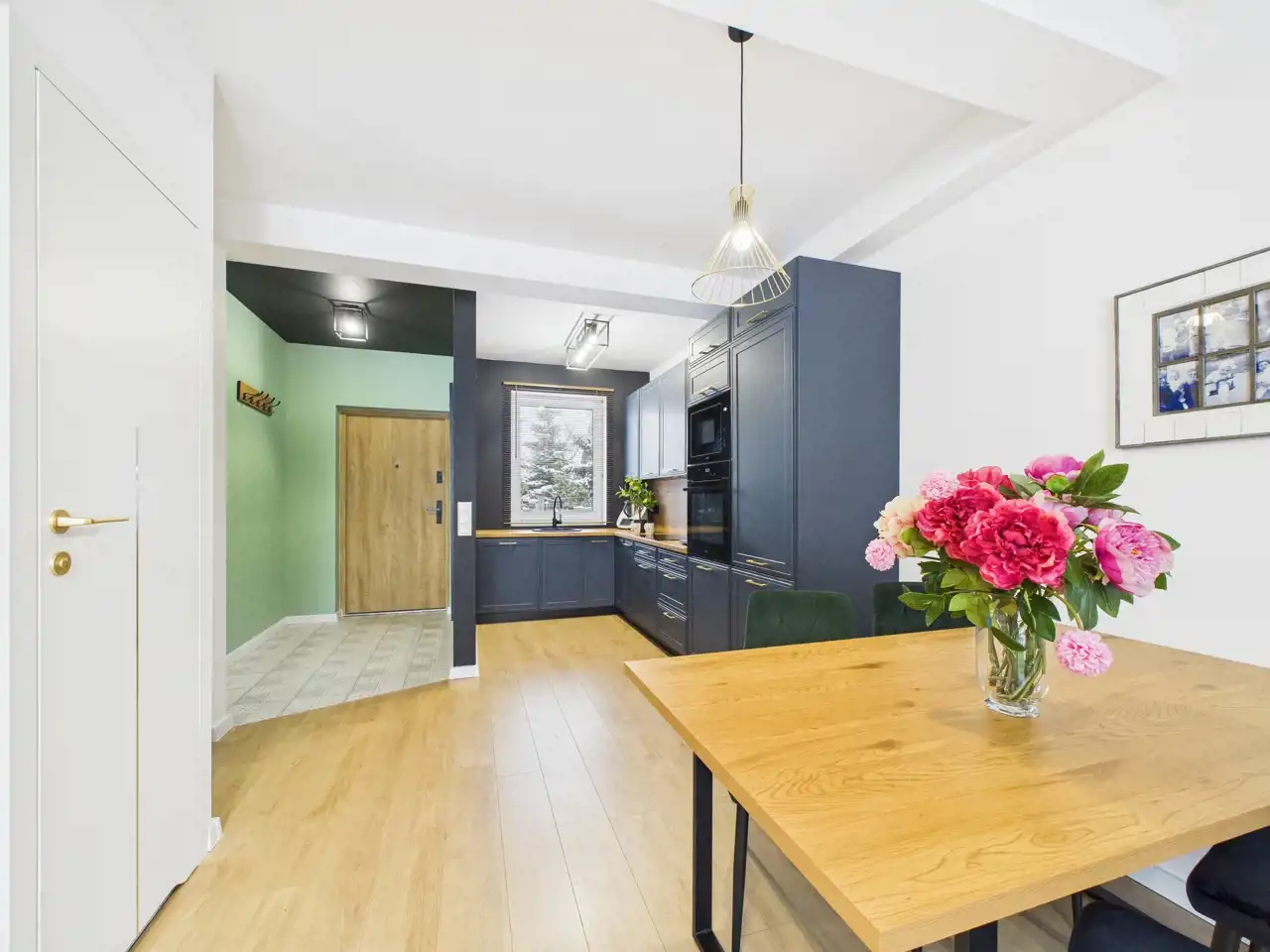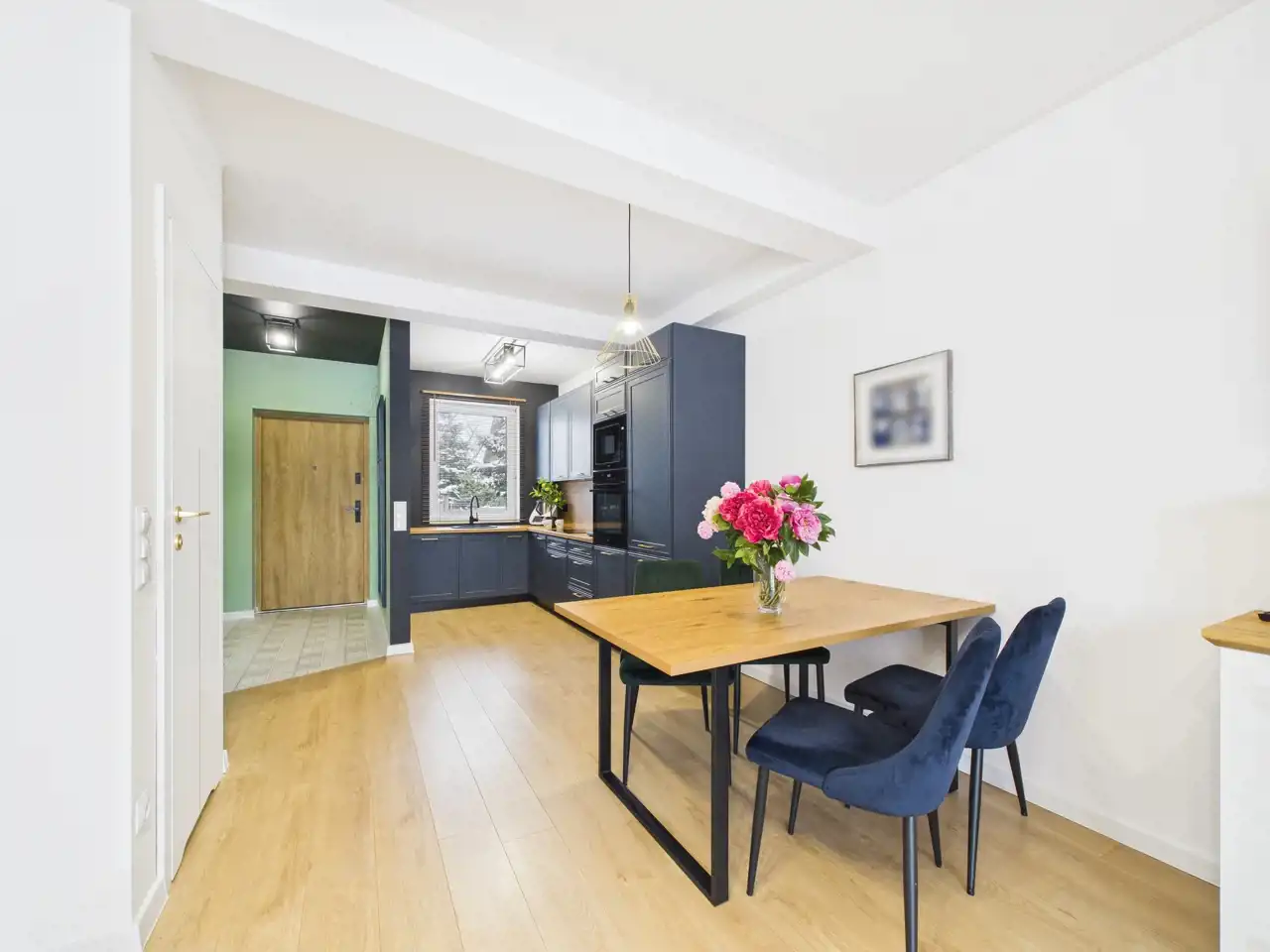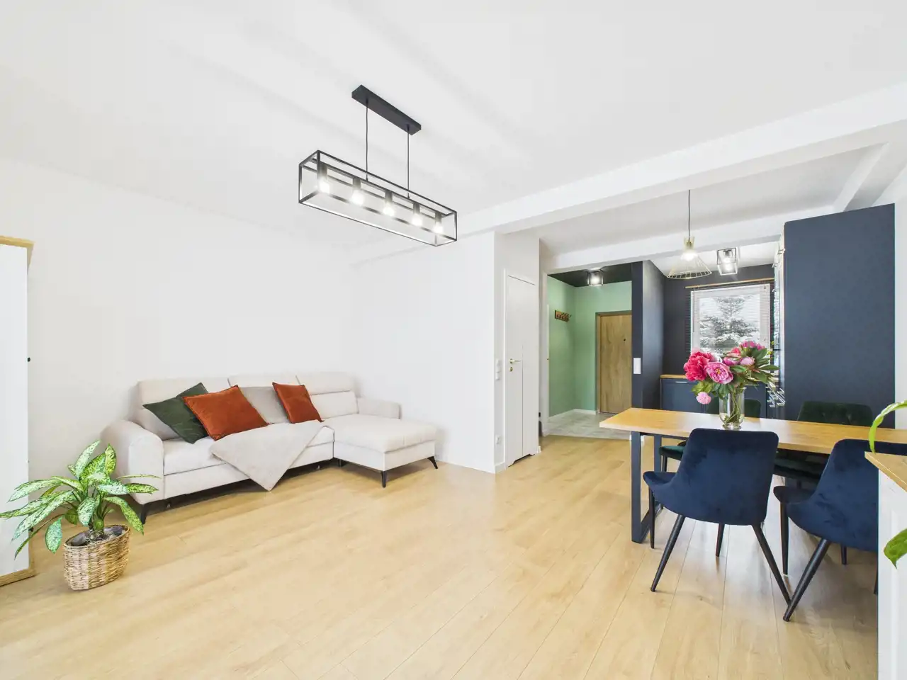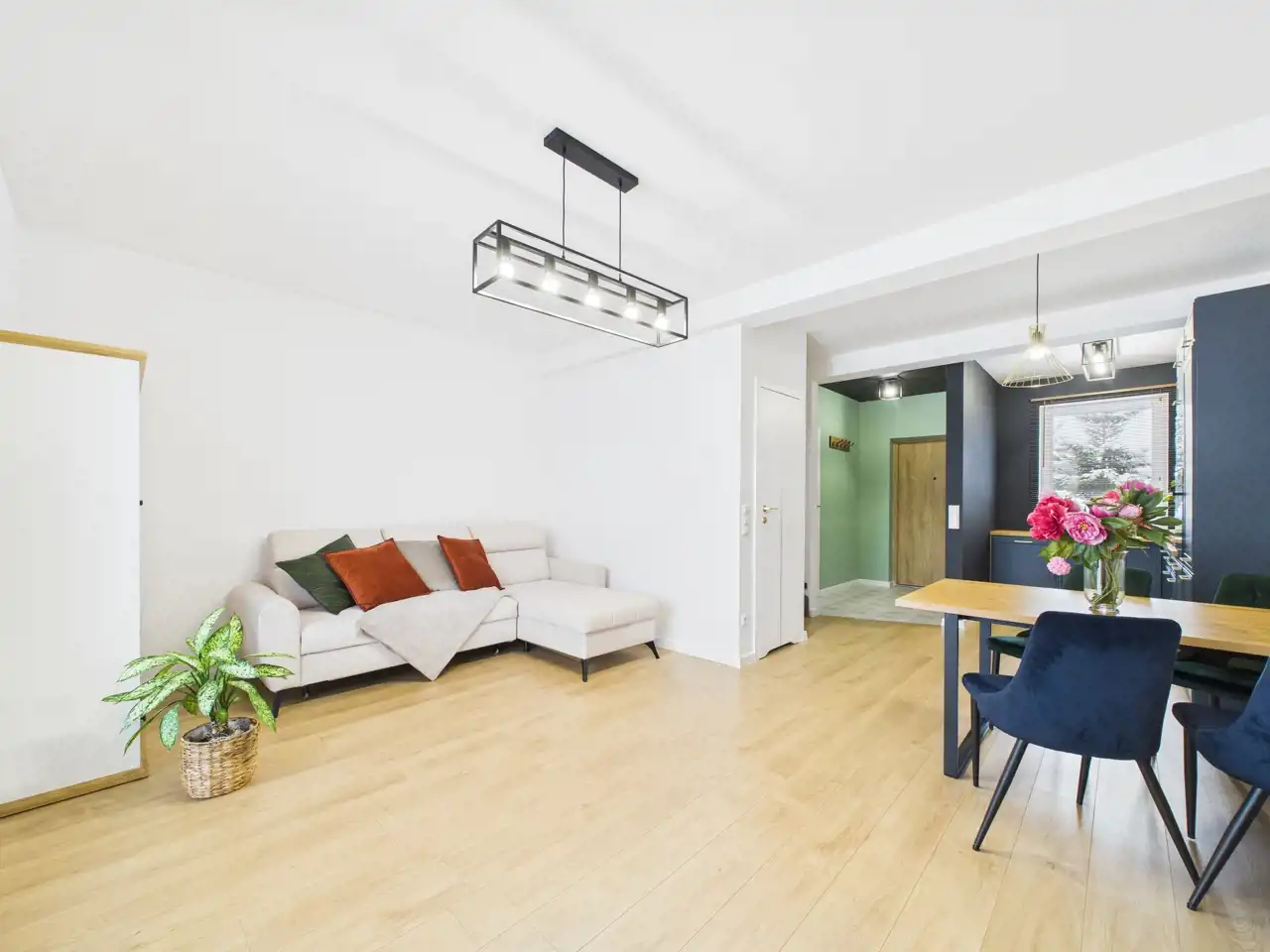 - salon z aneksem kuchennym oraz strefą jadalni- przedpokój