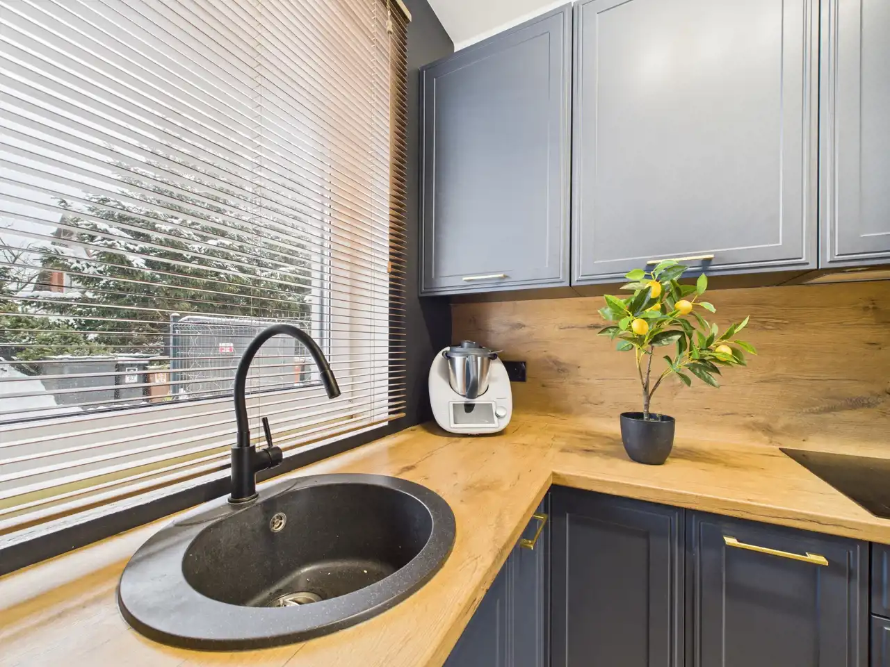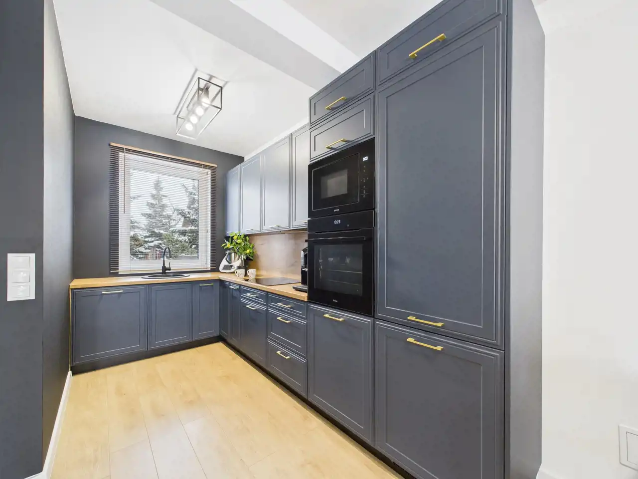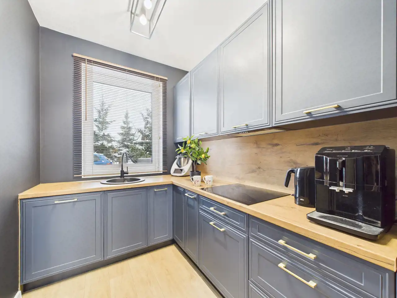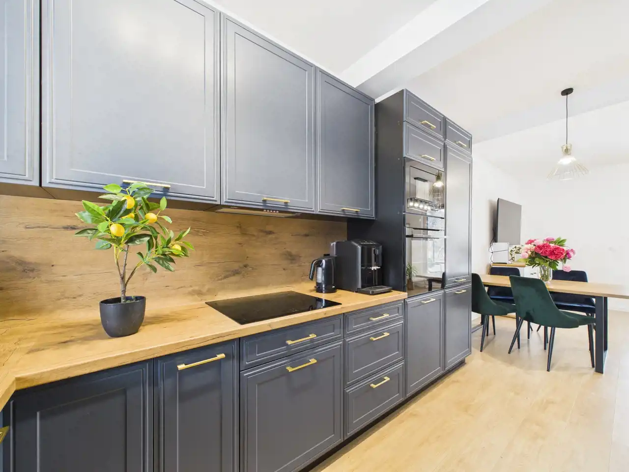 Na parterze znajduje się jasny salon z aneksem kuchennym, który stanowi naturalne centrum życia domowego -idealne miejsce na wspólne posiłki, rodzinne spotkania i codzienny relaks.