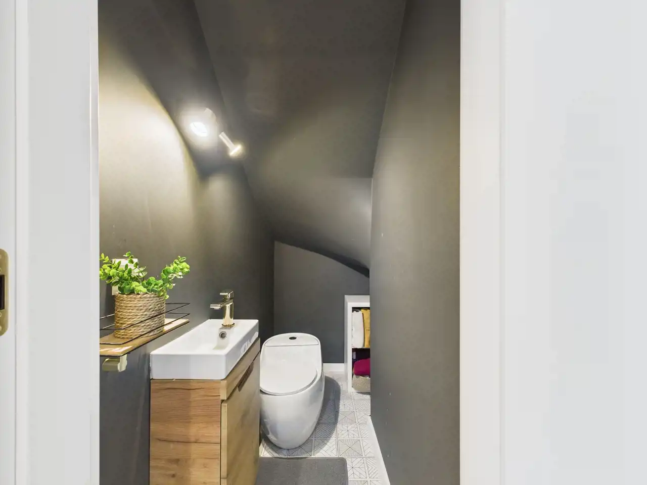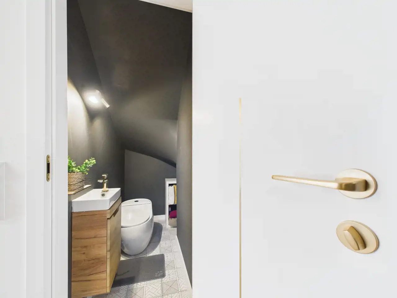 Dodatkowym atutem tej kondygnacji jest pomieszczenie gospodarcze, pozwalające na wygodne przechowywanie, oraz oddzielne WC, znacząco podnoszące komfort codziennego użytkowania.