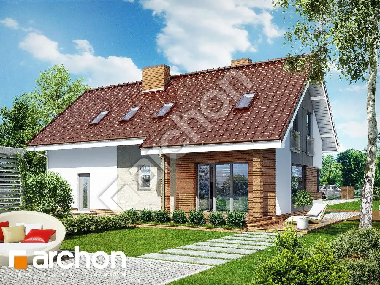 Z salonu przewidziane zostało wyjście na duży taras. Pomieszczenia przestronne, doskonale rozplanowane, bardzo funkcjonalne. Dom położony tak aby uzyskać jak najwięcej promieni słońca.